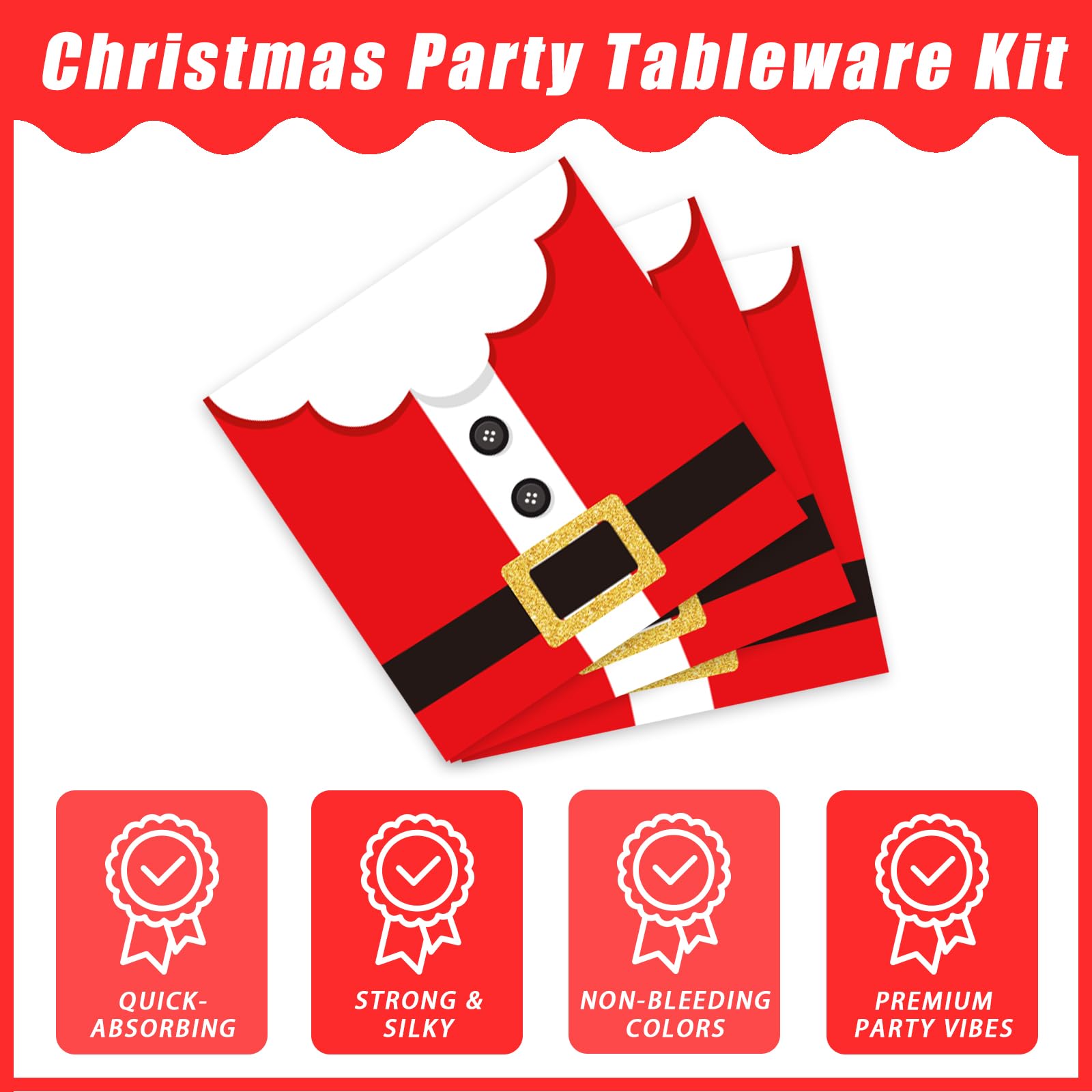 SANTA CLAUSE SUIT: Our plate and napkin set are inspired by Santa clause. Hold a wonderful winter Christmas party for your family, these bright colors will make your Christmas party full of vitality and create a festive atmosphere