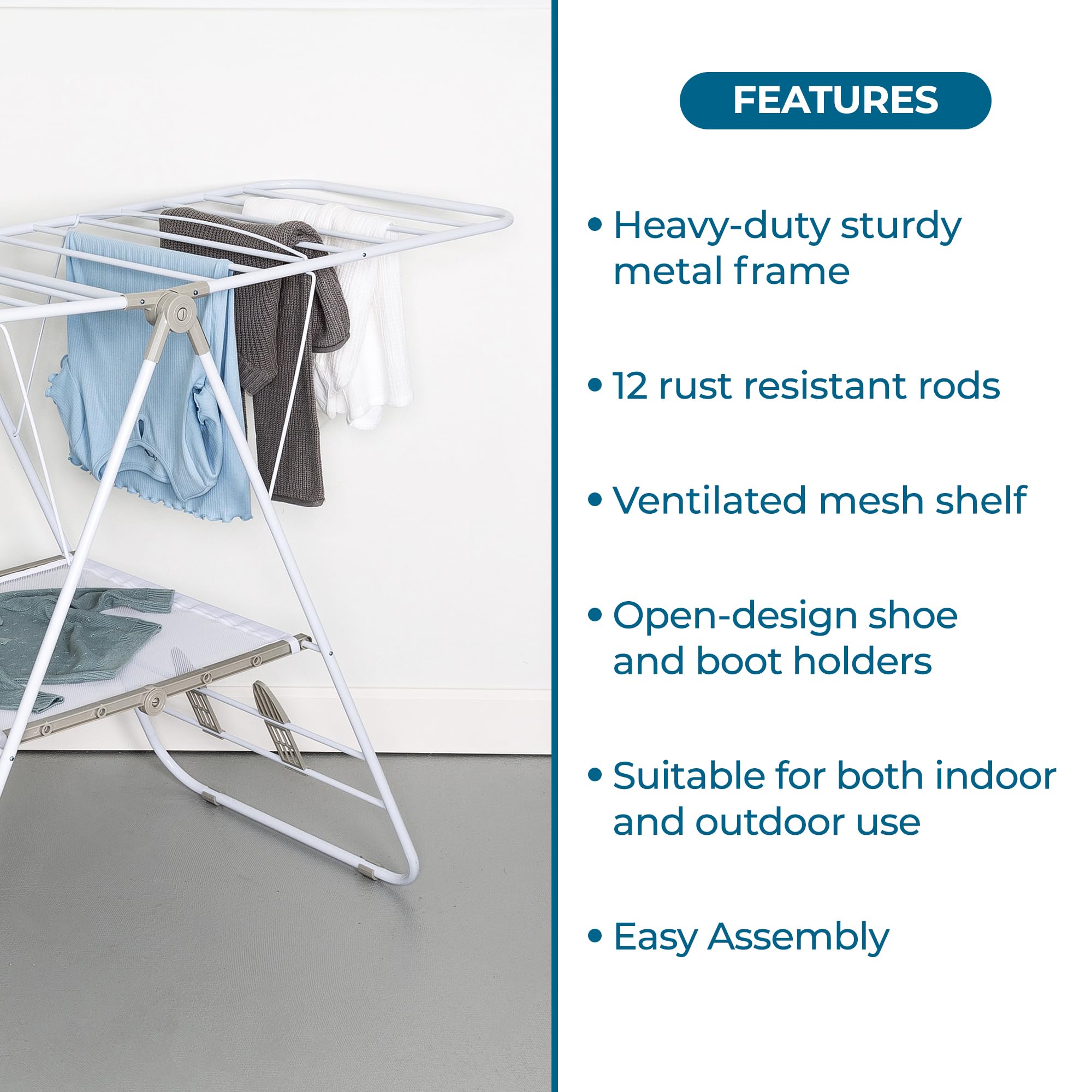 Multipurpose for Clothes & Shoes – Features dedicated shoe drying bars, allowing you to air-dry delicates, sweaters, sneakers, and more on a versatile drying stand