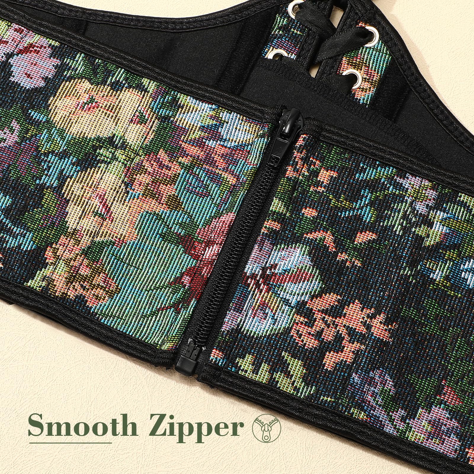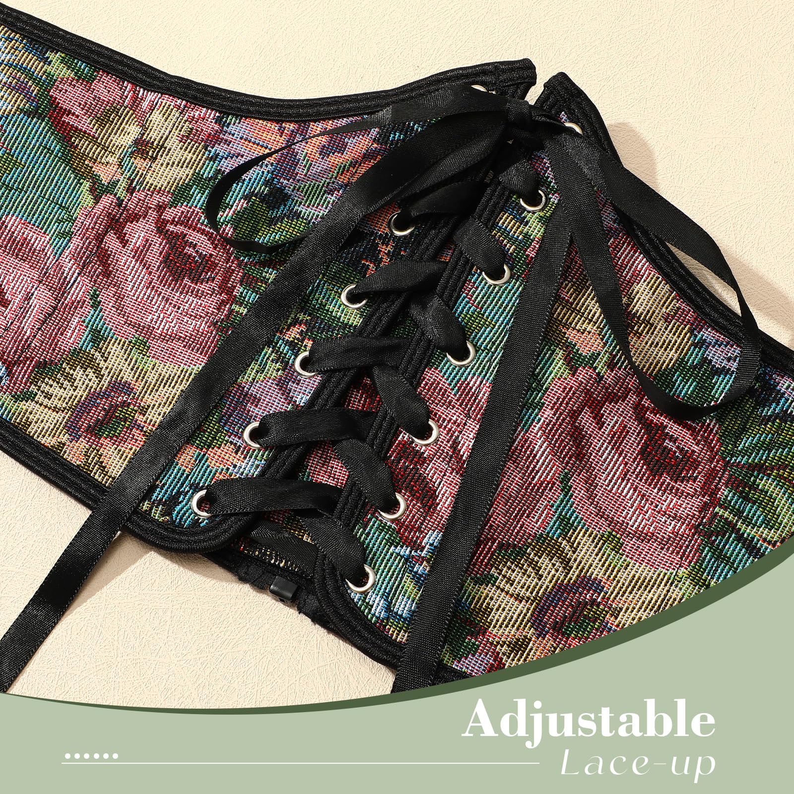 Fabric: This floral vintage corset features a vintage design with an artistic floral pattern. It is made of premium polyester fabric, which feels soft and comfortable.