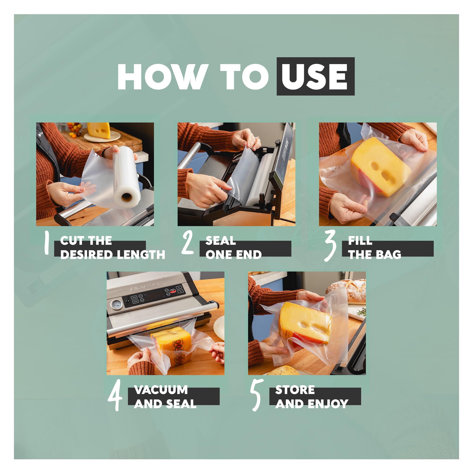Cut-to-Size Food Sealer Bags for Your Convenience - We've got you covered with our roll of vacuum food storage bags. Store your leftovers, marinades, prime cuts, and more with still plenty of sheets to spare.