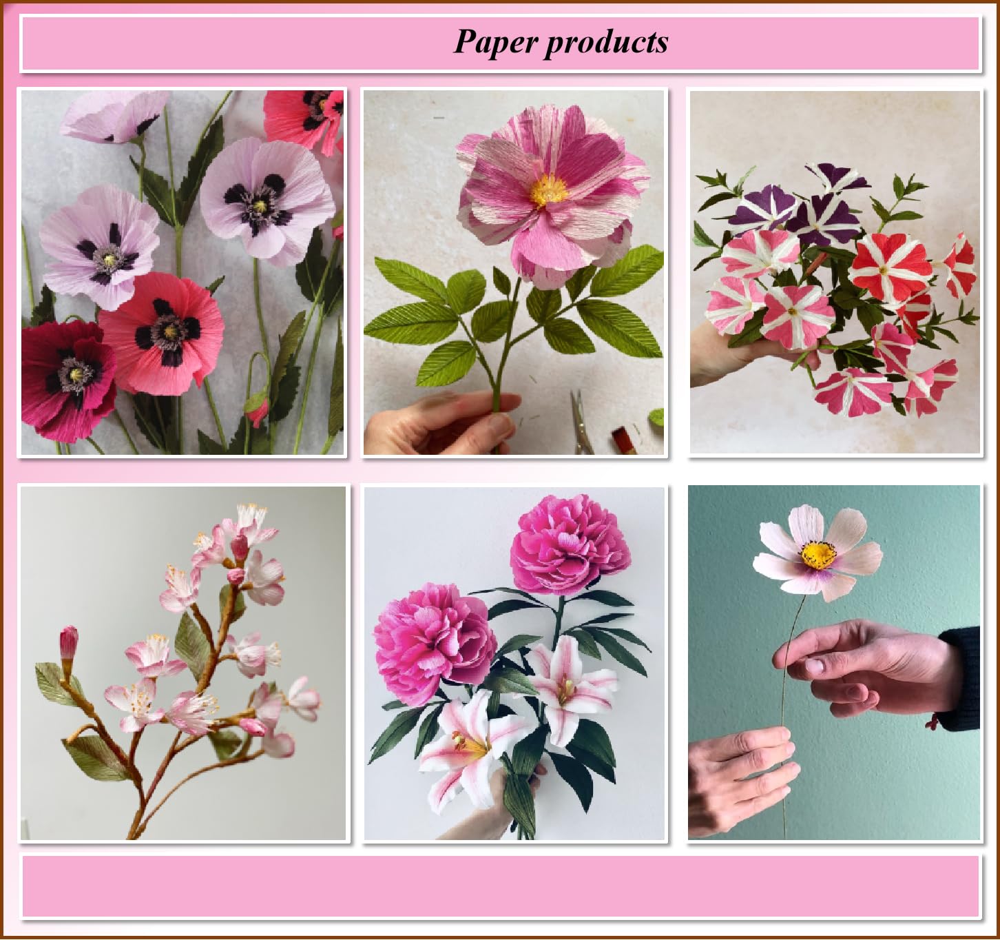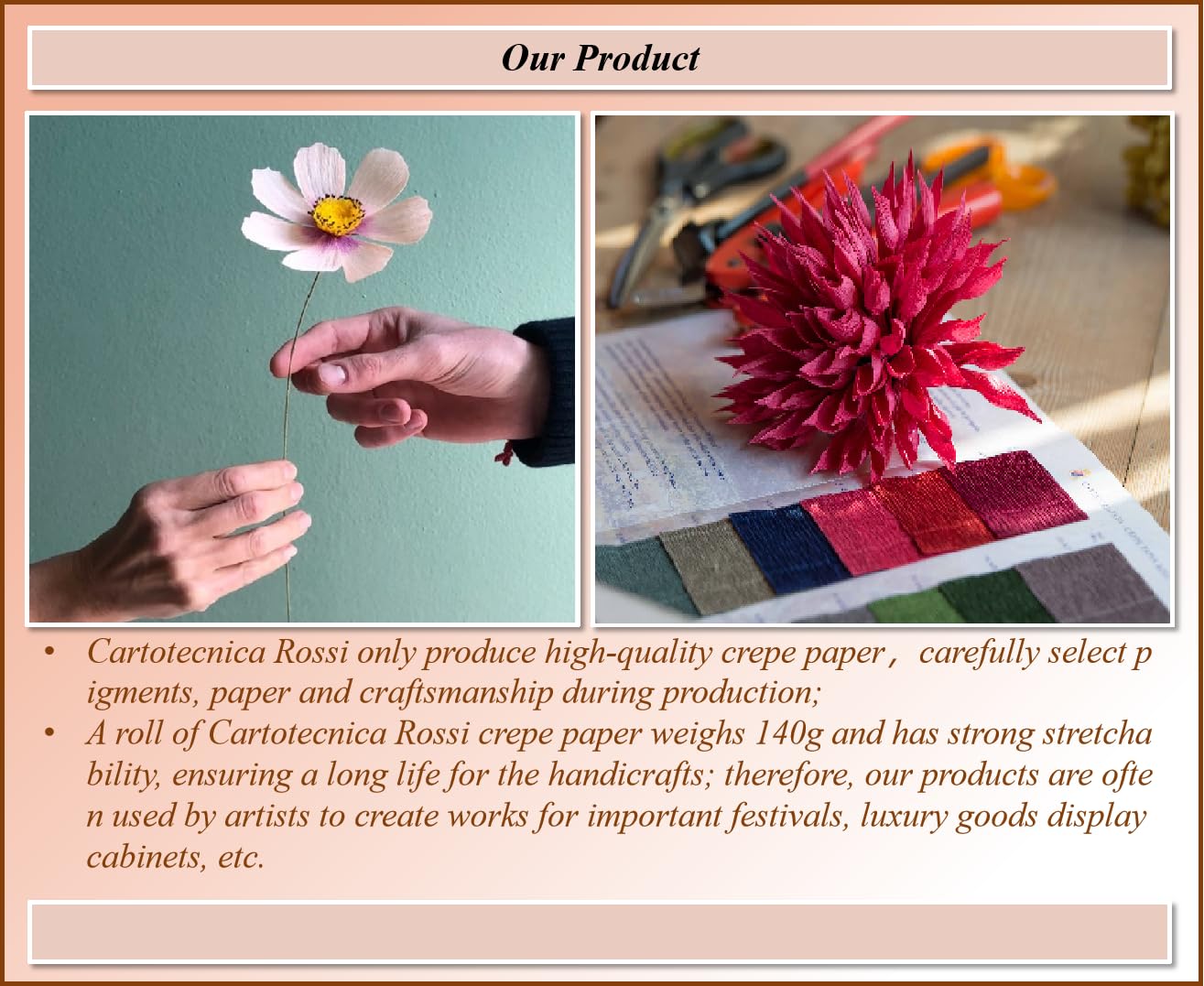 【Focus Creates Professionalism】 Our brand's paper flowers are widely used in luxury displays, weddings, and interior decorations. We offer a variety of crepe paper specifications and a wide range of colors. We use FSC-certified pulp and raw materials, which are environmentally friendly and protect the health of the makers. Our paper is thicker and more elastic, ensuring that paper crafts maintain their shape for a long time