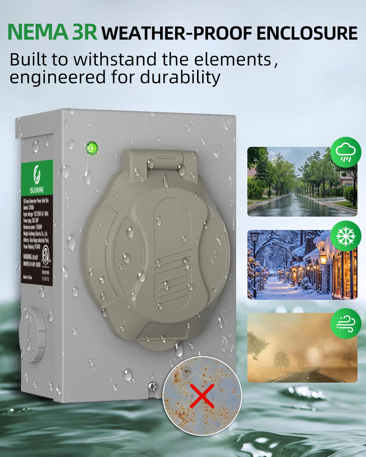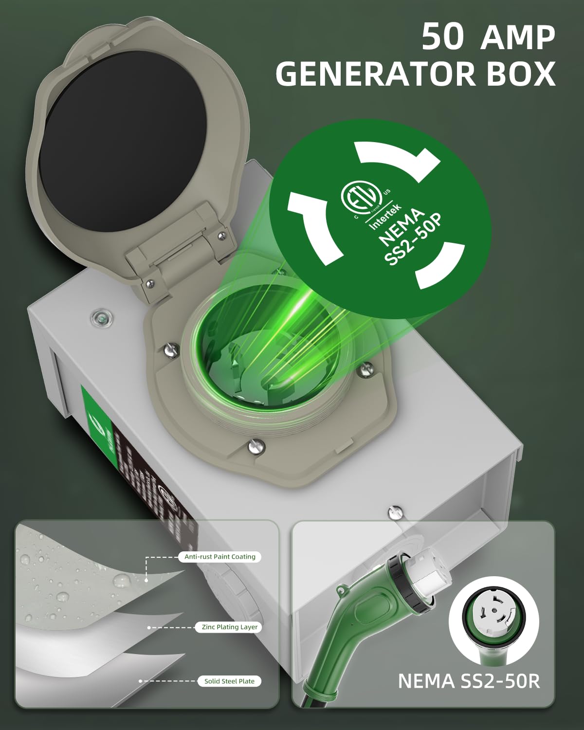 ETL Certified for Safety: This NEMA SS2-50P power inlet box meets ETL safety standards for outdoor use. Fully compatible with all 50 Amp NEMA SS2-50P generator cords, ensuring reliable operation during power outages, severe weather, and other emergency situations.