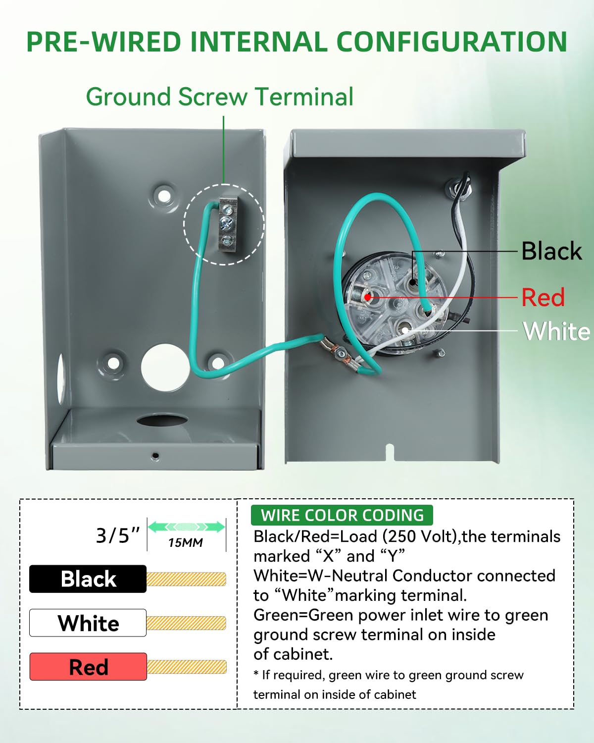 3R Rainproof Enclosure: Crafted from high-grade galvanized steel, this 50 Amp generator inlet box is resistant to rust, corrosion, wind, rain, snow, and UV exposure. It offers superior durability and reliability, withstanding even the harshest outdoor conditions for long-lasting performance.