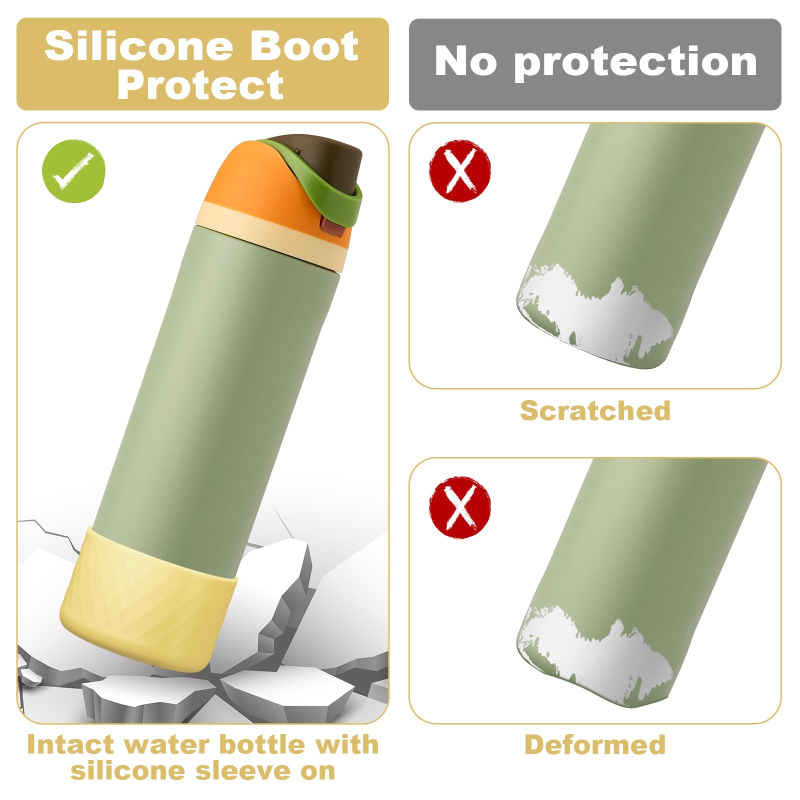 【Perfect Compatiblity】The silicone boot is suitable for Owala 24oz FreeSip, Twist, and Flip stainless steel water bottles. It is precisely made according to the size of the original cups, which perfectly fits the cup bottom and won't fall off easily.