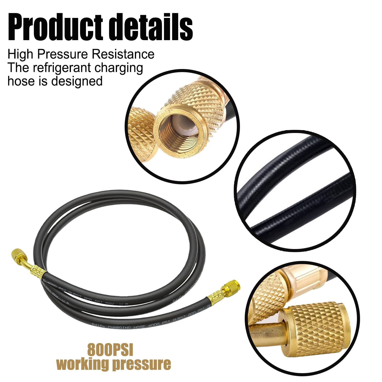 High-Quality Connection Equipped with a 1/4-inch SAE flare nut, the hose provides a secure connection and excellent sealing performance, effectively preventing refrigerant leakage and ensuring a smooth charging process, reducing maintenance time.