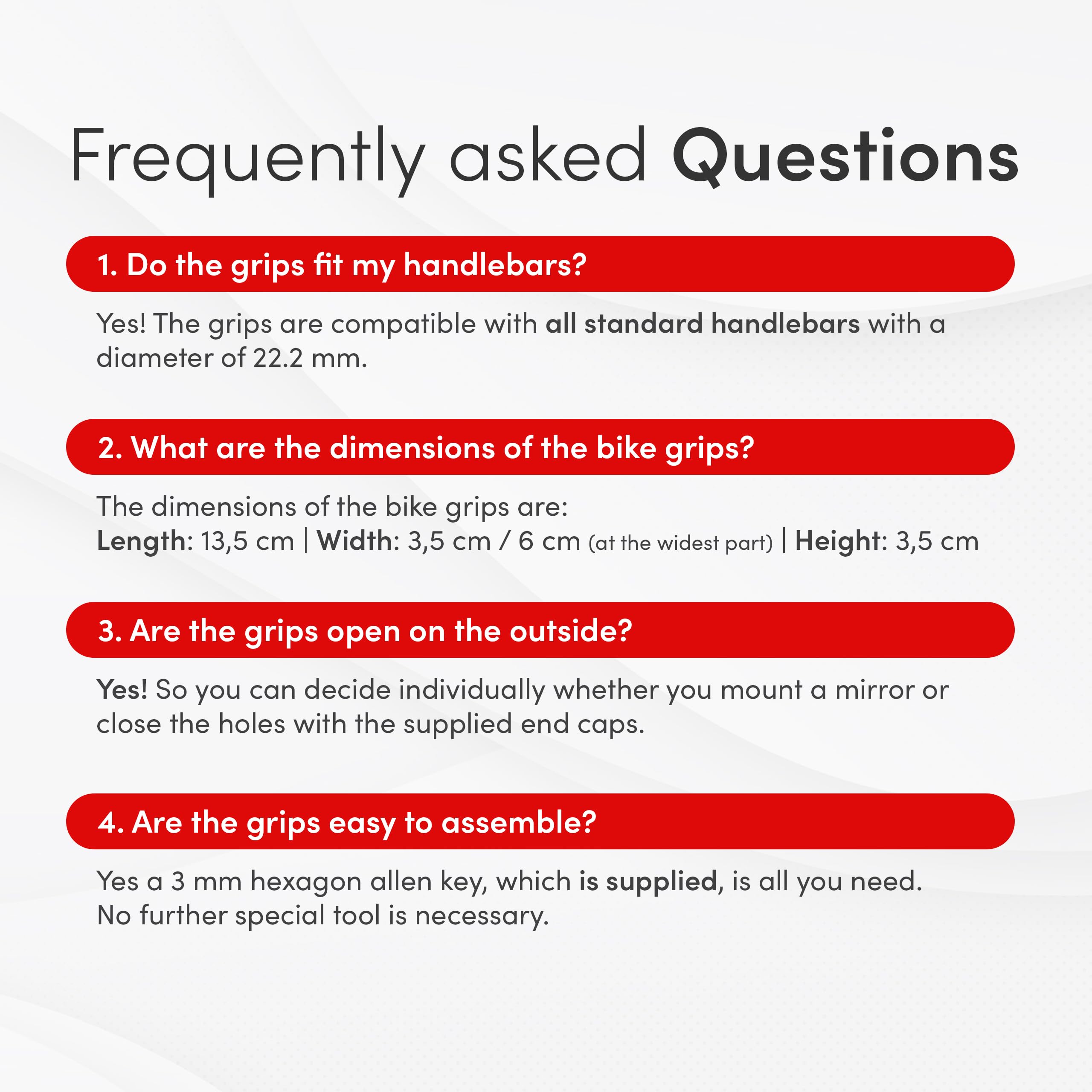 EASY INSTALLATION with included hex key for hassle-free setup. Simple and convenient installation for your mtb grips or bicycle handlebar grips.