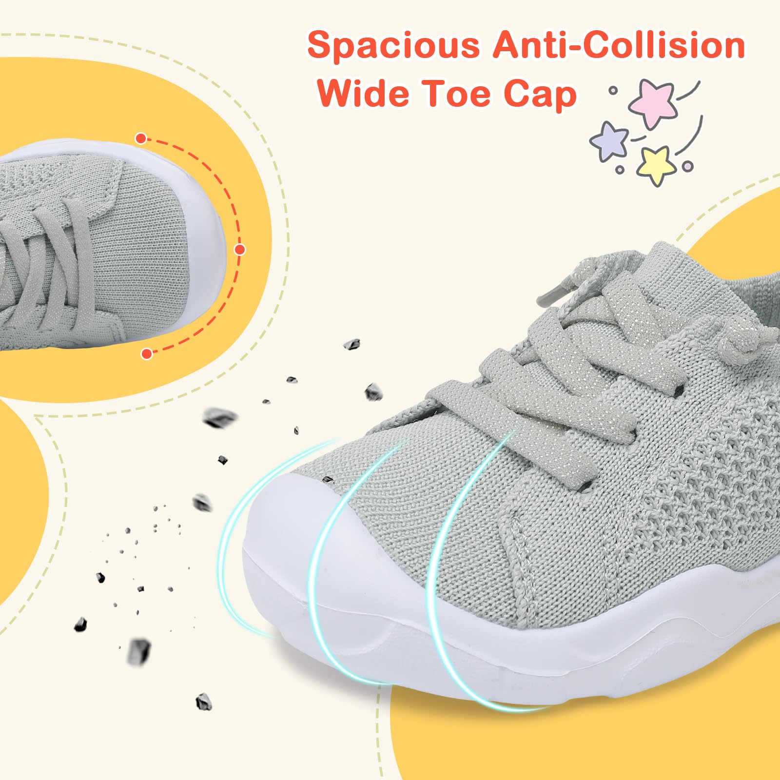 Wide and Anti-collision: These Toddler sneakers have anti-collision and wide toe caps to protect the kid's toes and allow the kid's toes to stretch freely without being squeezed. Meeting the needs of any foot-type child