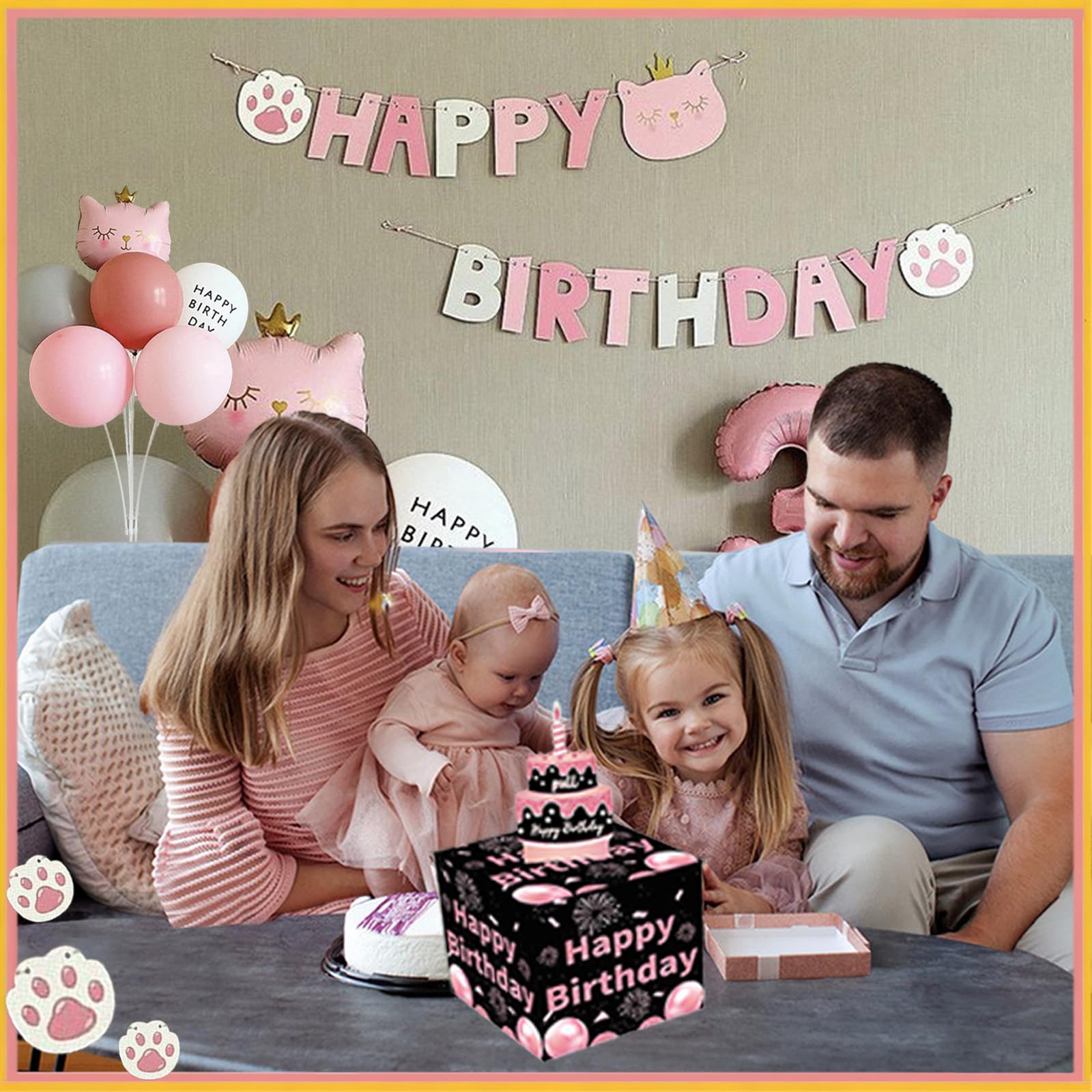 【Size Design】The Happy Birthday Money Box is a surprise design with 4.3"x 5.3" x 5.3"and the "Happy Brithday" theme card are made of sturdy cardboard with color printing. The transparent bag size is 3.15" x 7.89" for you to save the cash with 2.61" x 6.14" size.
