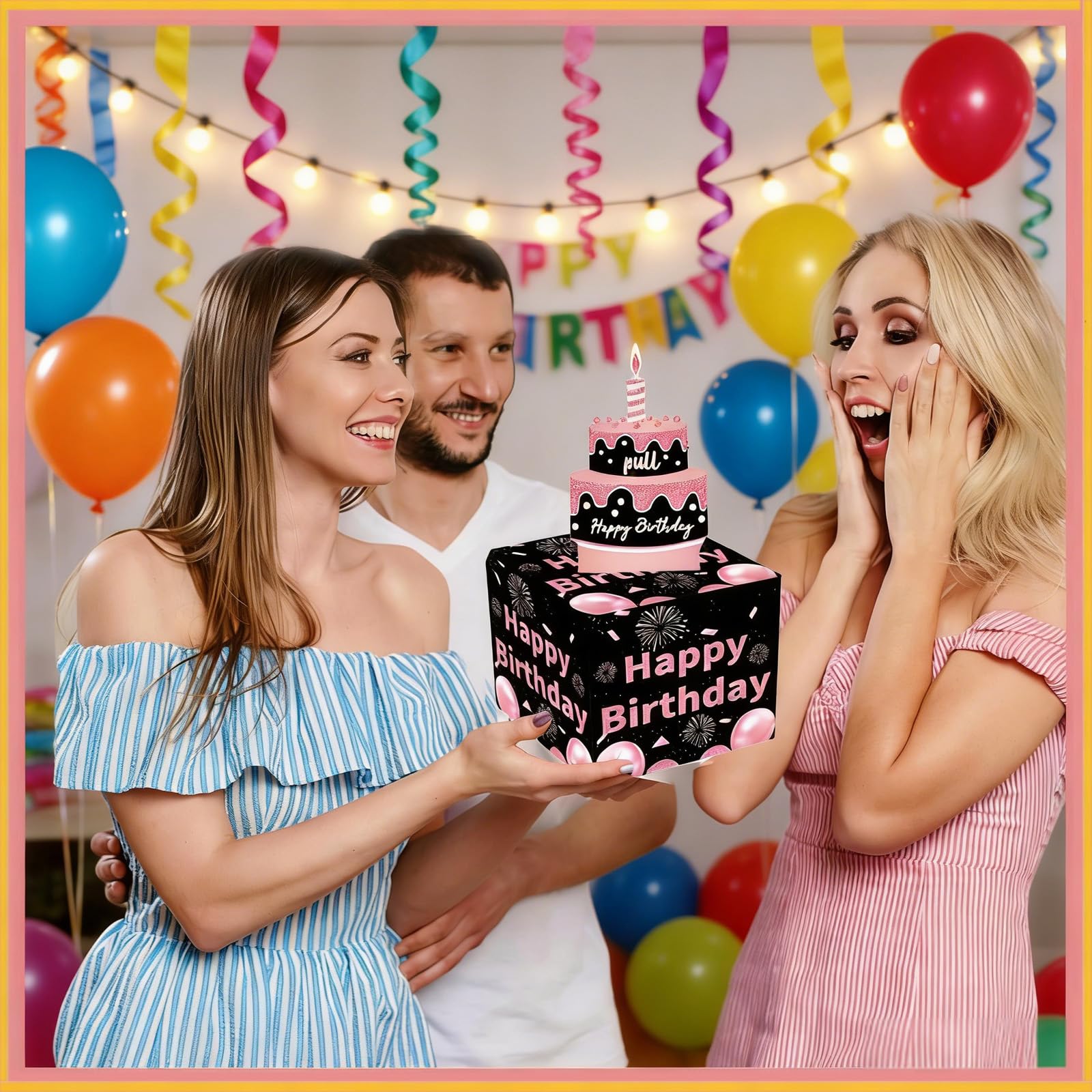 【Various Ocassions Suited】The surprise birthday box explosion is suitable for various of occasions whether it's birthday party,festval or holiday celebrations at any age, capable of expressing good wishes and blessings perfectly by putting inside no matter cash, cards, pictures or any other gifts you can imagine.money roll gift box makes a big surprise and liven up the enoyable atmosphere!