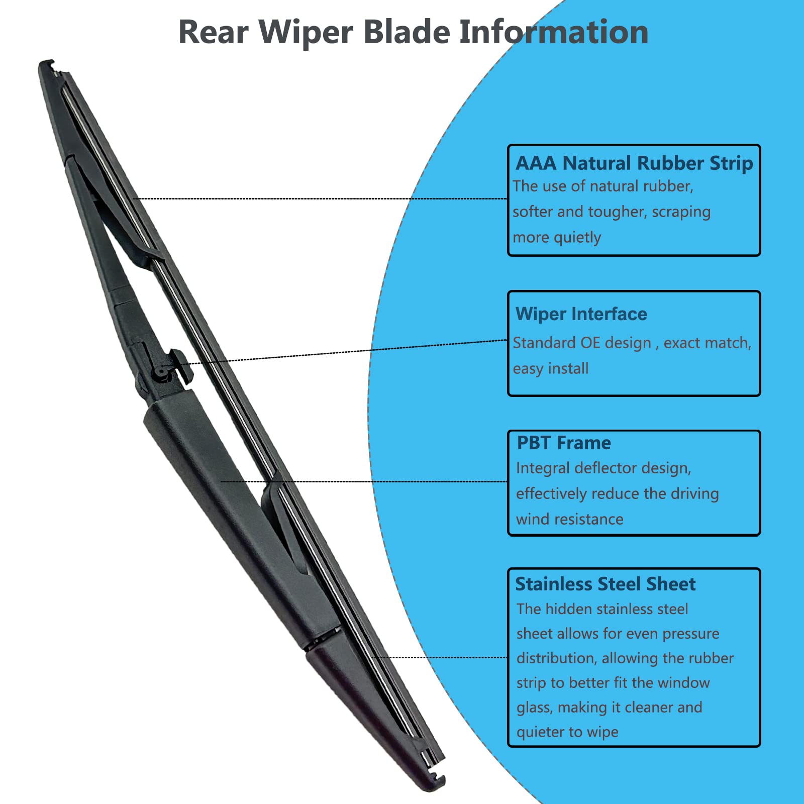 【Perfect Match for the Original Car】The rear windshield wiper arm blade set adopts professional manufacturing process, with high precision and good reliability, perfect Match for the Original Car.Please verify Fitment or Application