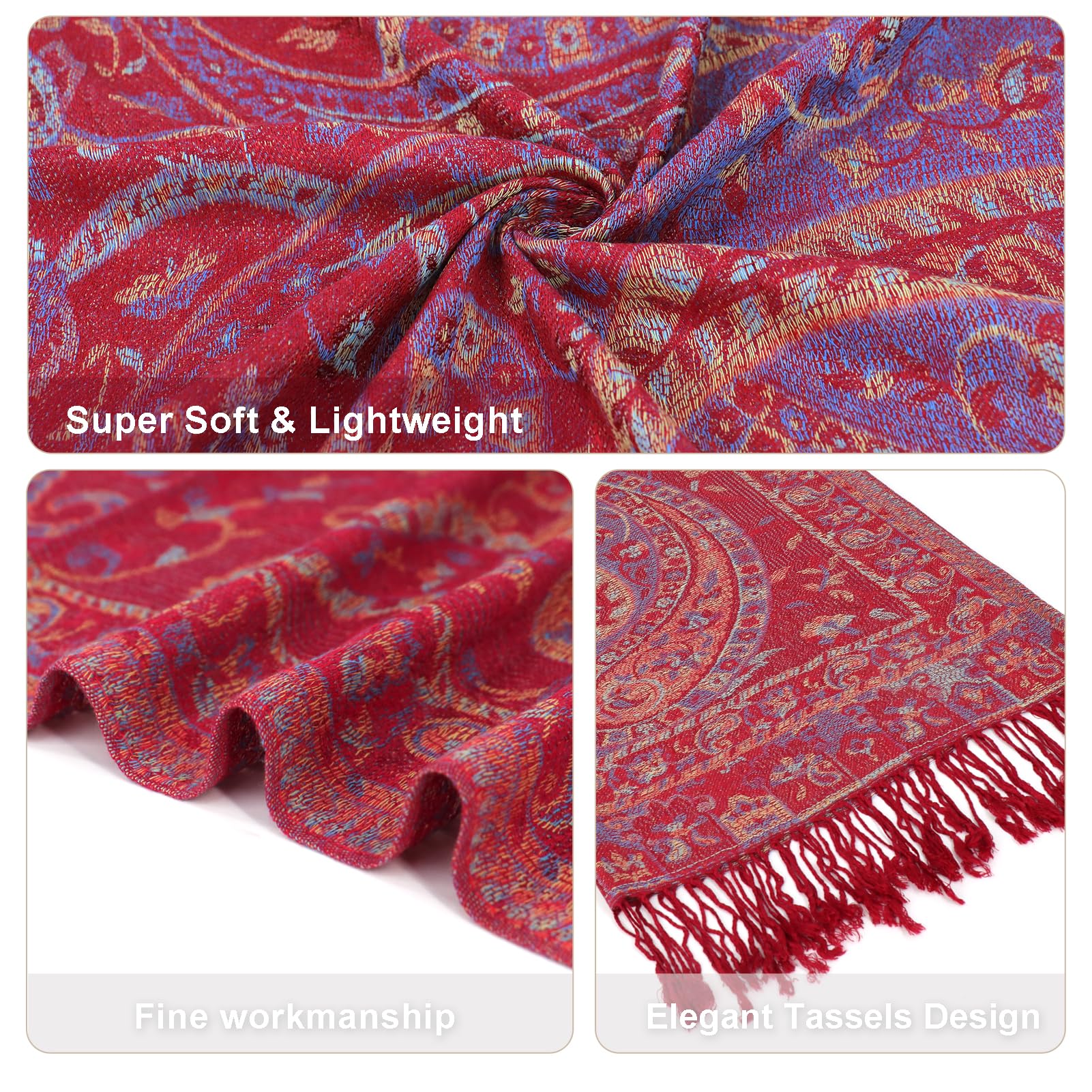 FABRIC AND STYLE: These paisley pashmina shawls and wraps are made of 55% Viscoes+45% Acrylic,very softThe Paisley pattern is the leaf of the "tree of life" linden or date palm, which resembles a cashew nut,sophisticated and elegant