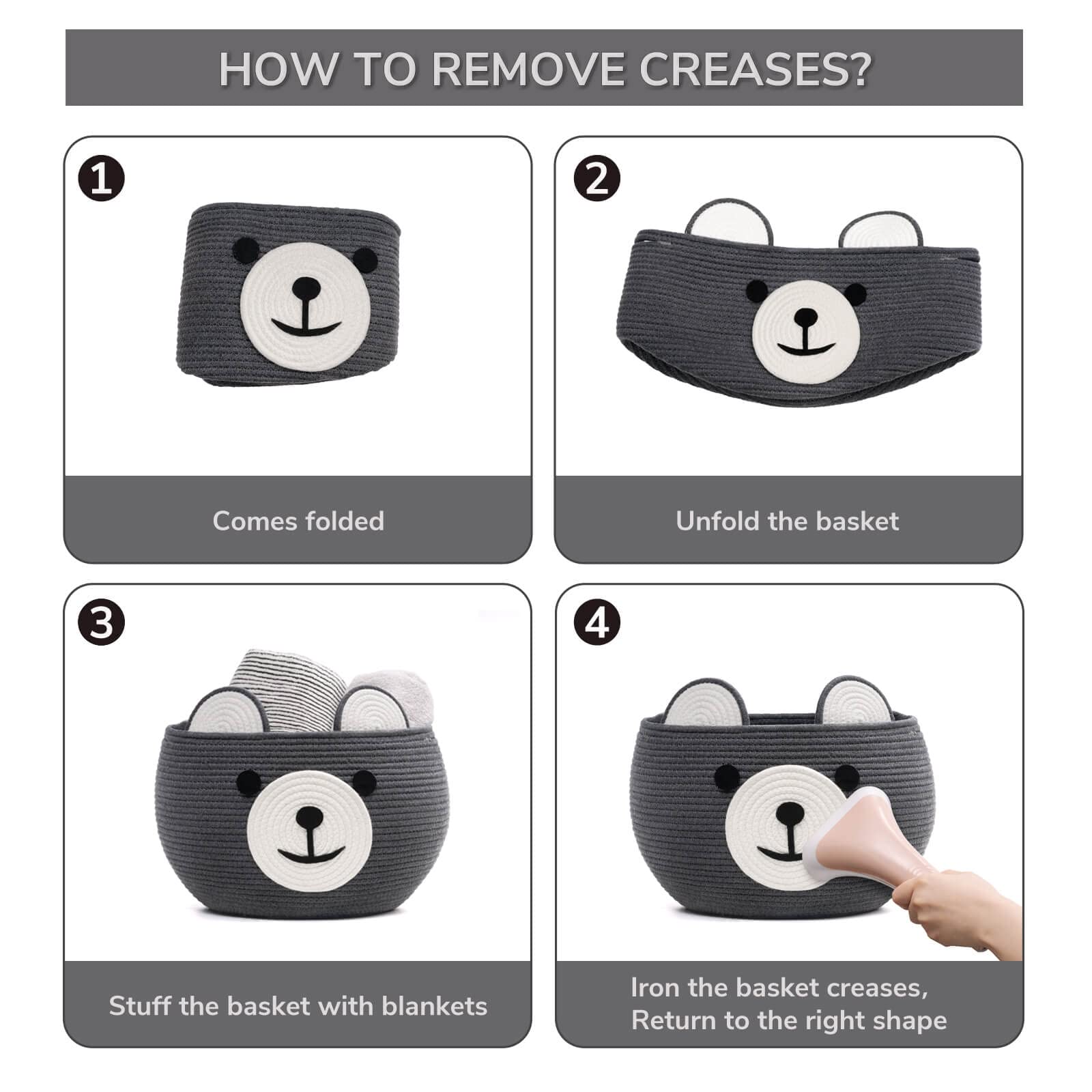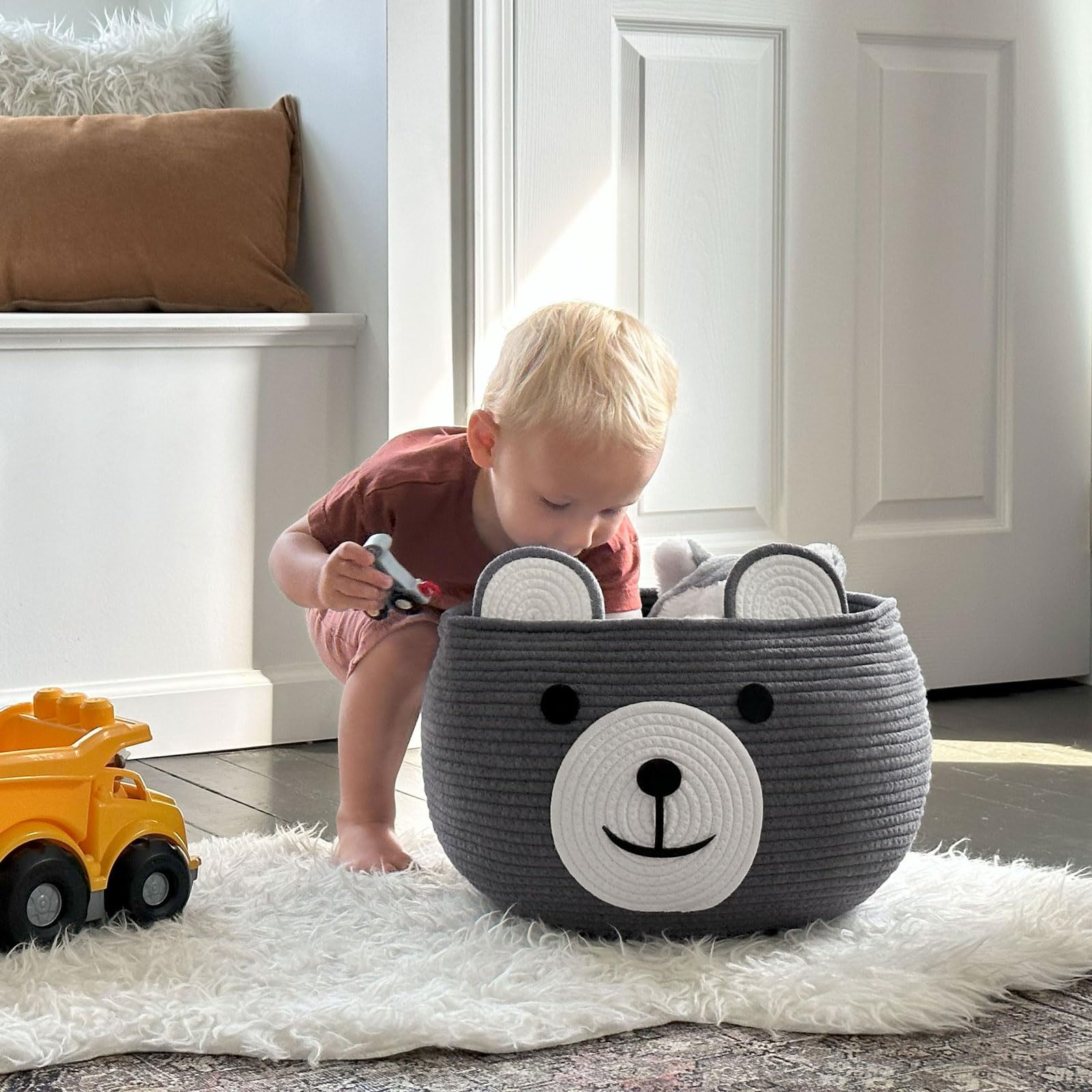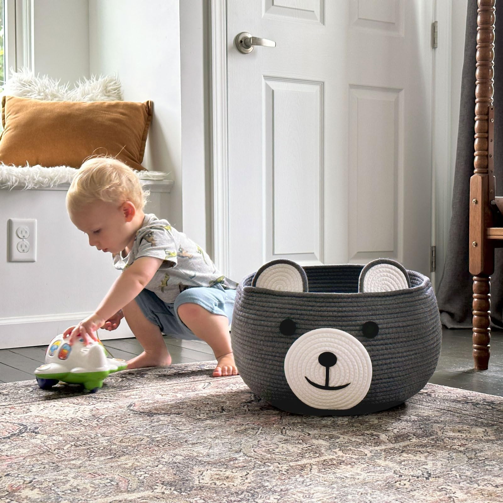 Baby Laundry Bin: The Bear basket is made of cotton rope with a soft touch, which is perfect for home use, especially for toddlers, babies, children, and pets. It's a smart choice for organizing clothes, toys, stuffed animals, blankets, and so on