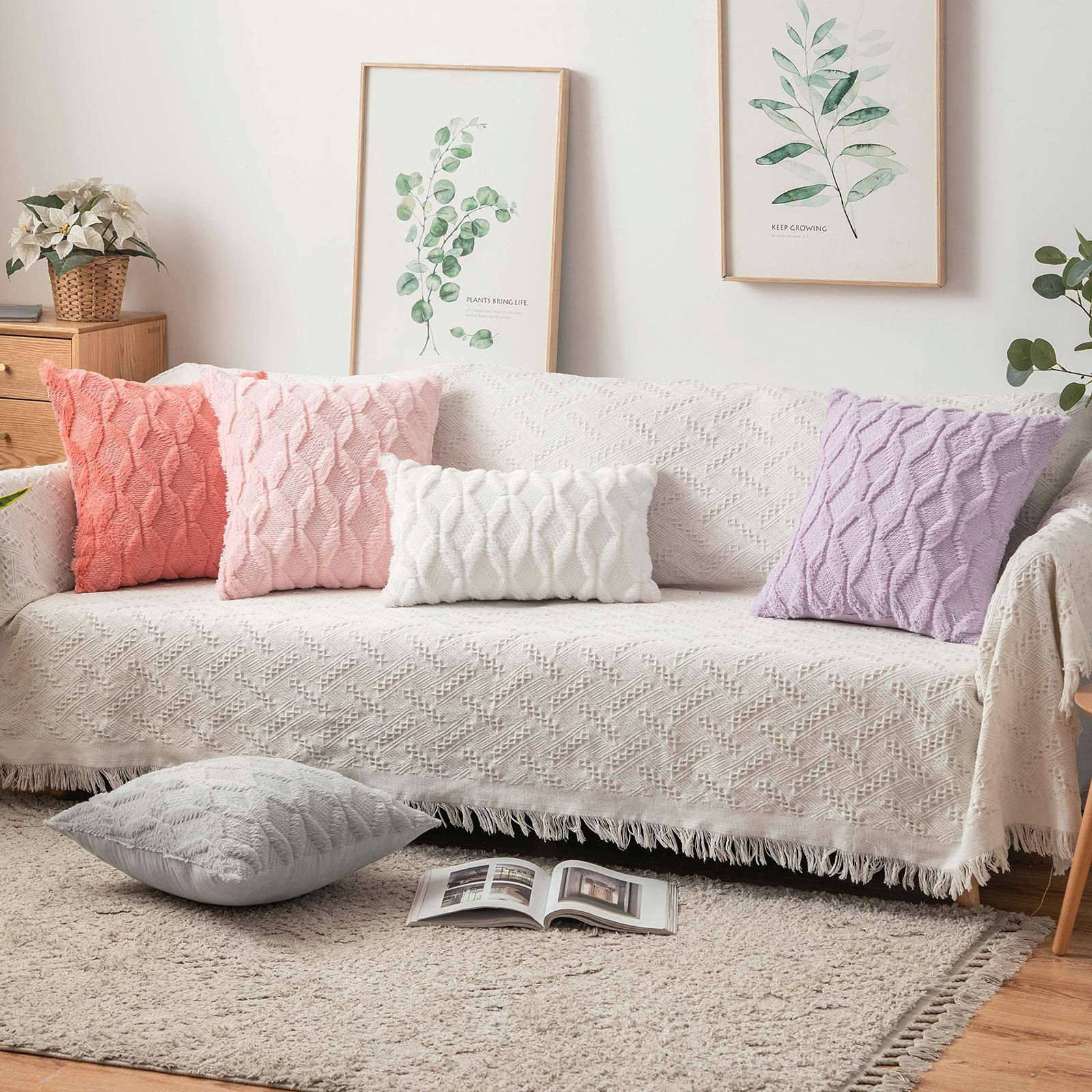 [Care Guide] The MIULEE throw pillow covers are easy to care. It is recommended to hand wash and gentle cycle for machine washing with low tumble dry. Please note to not iron the cover. When using it for the first time, floating hair is common which can be removed by giving it a gentle brush. In different lighting or on a different screen, color may seem differently.