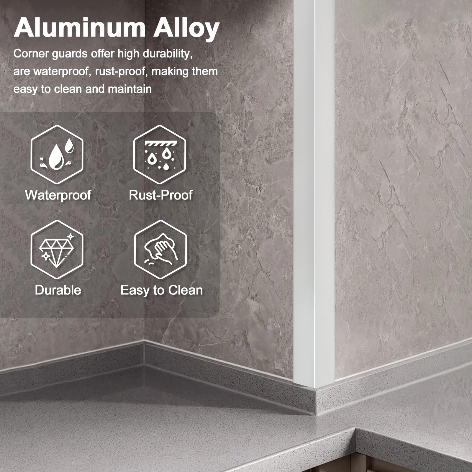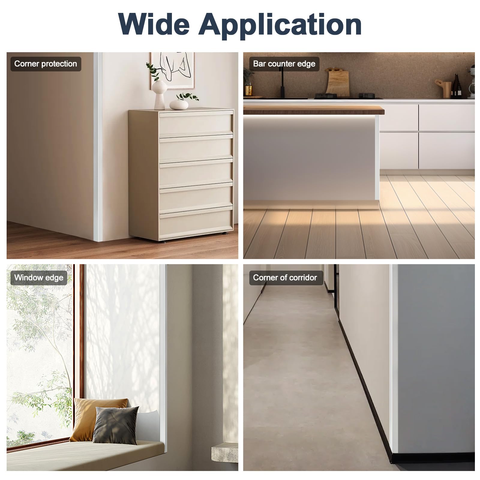 Premium Metal Material: Heavy-Duty Aluminum corner protector resist dents, scratches, and corrosion, protecting wall corners, furniture edges, cabinets, and baseboards from daily wear, pets, or accidental impacts. Suitable for homes, offices, or rentals
