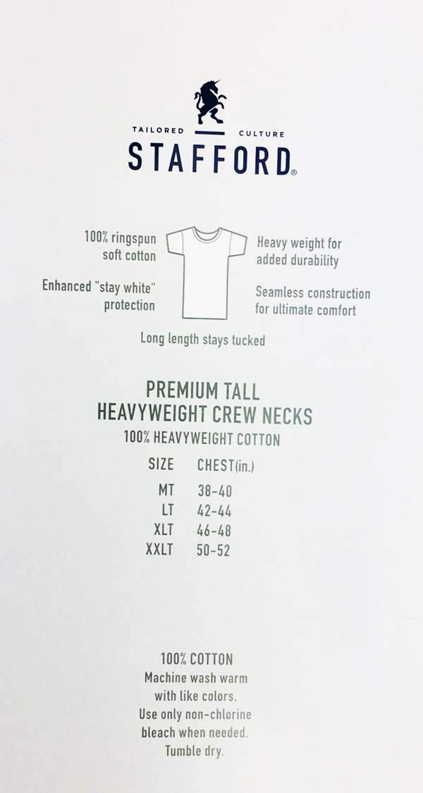 Stafford Men’s Tall/Extra Tall 100% Heavy Weight Cotton Crew Neck Undershirt, White, Short Sleeve, 4 Pack (Extra Large Tall (XLT))