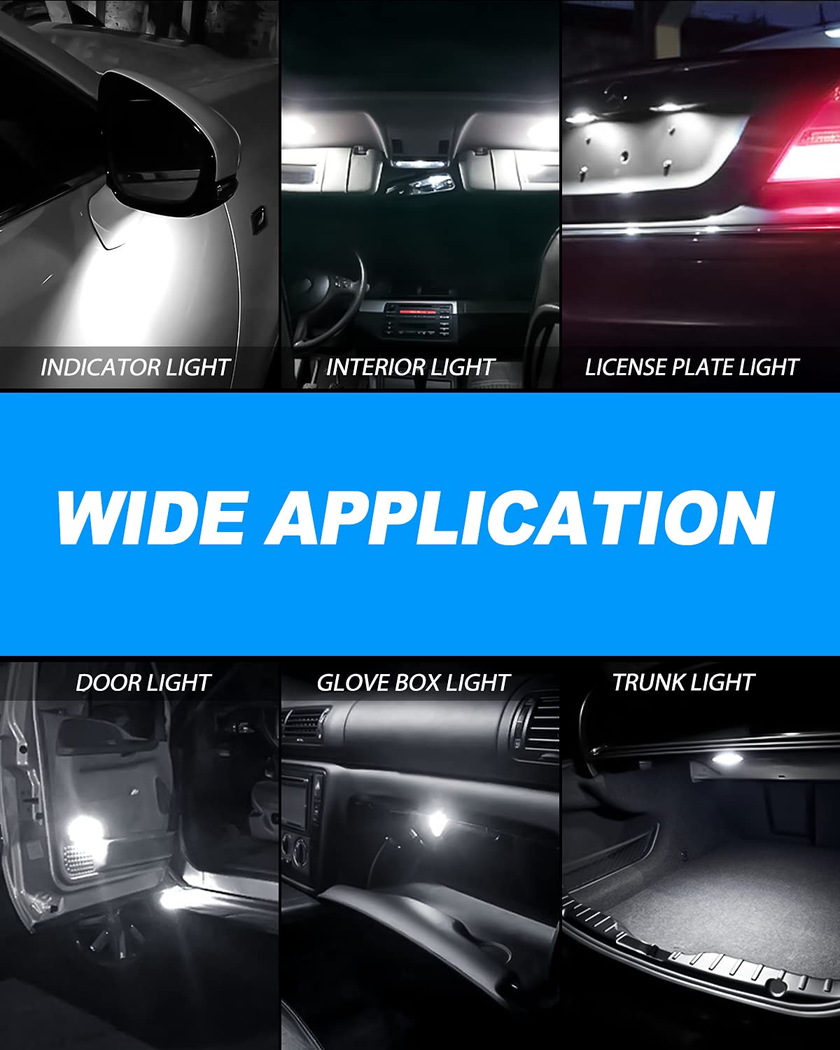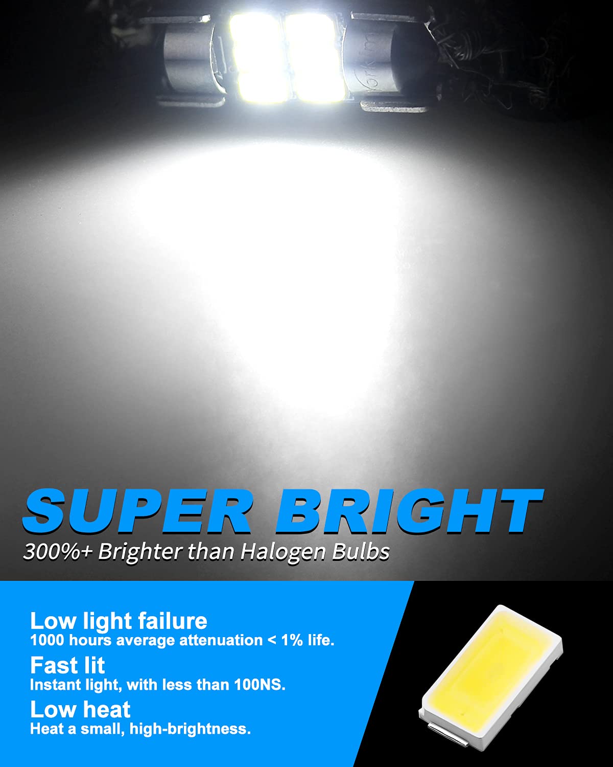【WIDE APPLICATION】 - DE3022 LED / 1.25”, 6500K White, 12V AC, the 3022 LEDs can be used as LED Map Lights, LED Dome Lights, LED License Place Lights, LED Side Door Courtesy Lights, LED Cargo Lights, LED Trunk Lights etc.