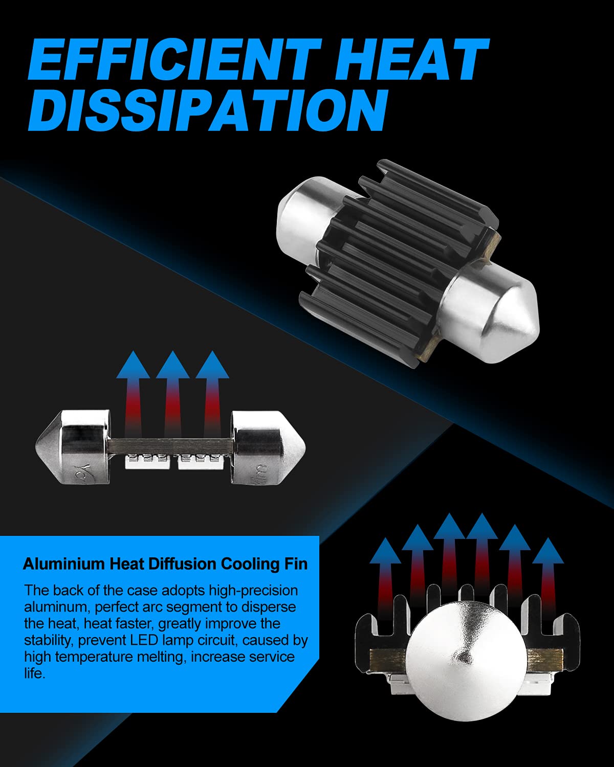【ENERGY EFFICIENT】 – Yorkim 31mm LED Interior Lights are made with aluminum body design for better heat dissipation, low temperature and low power consumption.
