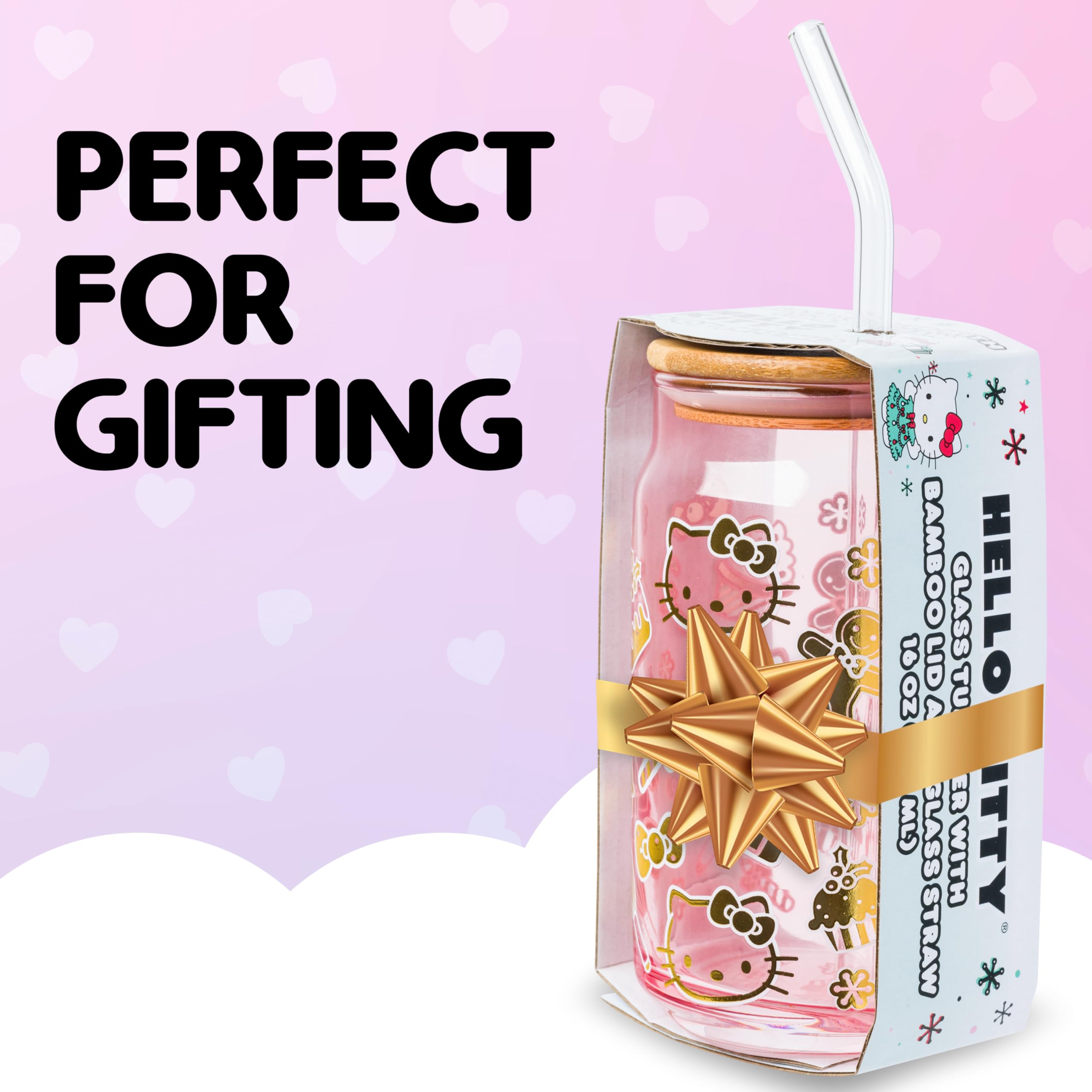 HOLIDAY GIFTS: With its festive design, this glass tumbler makes a great gift for Hello Kitty fans of all ages. Great for holidays, birthdays, and housewarmings.