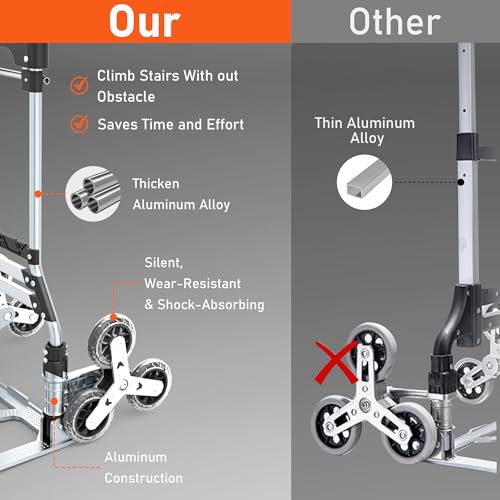Unmatched Durability & 220Lbs Load Capacity: This sturdy stair climbing cart is built for heavy-duty use, with a reinforced aluminum alloy frame and 20mm thick steel pipe skeleton ensuring exceptional pressure resistance, impact resistance, and rust resistance. It handles 220 lbs without wobbling or deformation, ideal for household and business tasks.