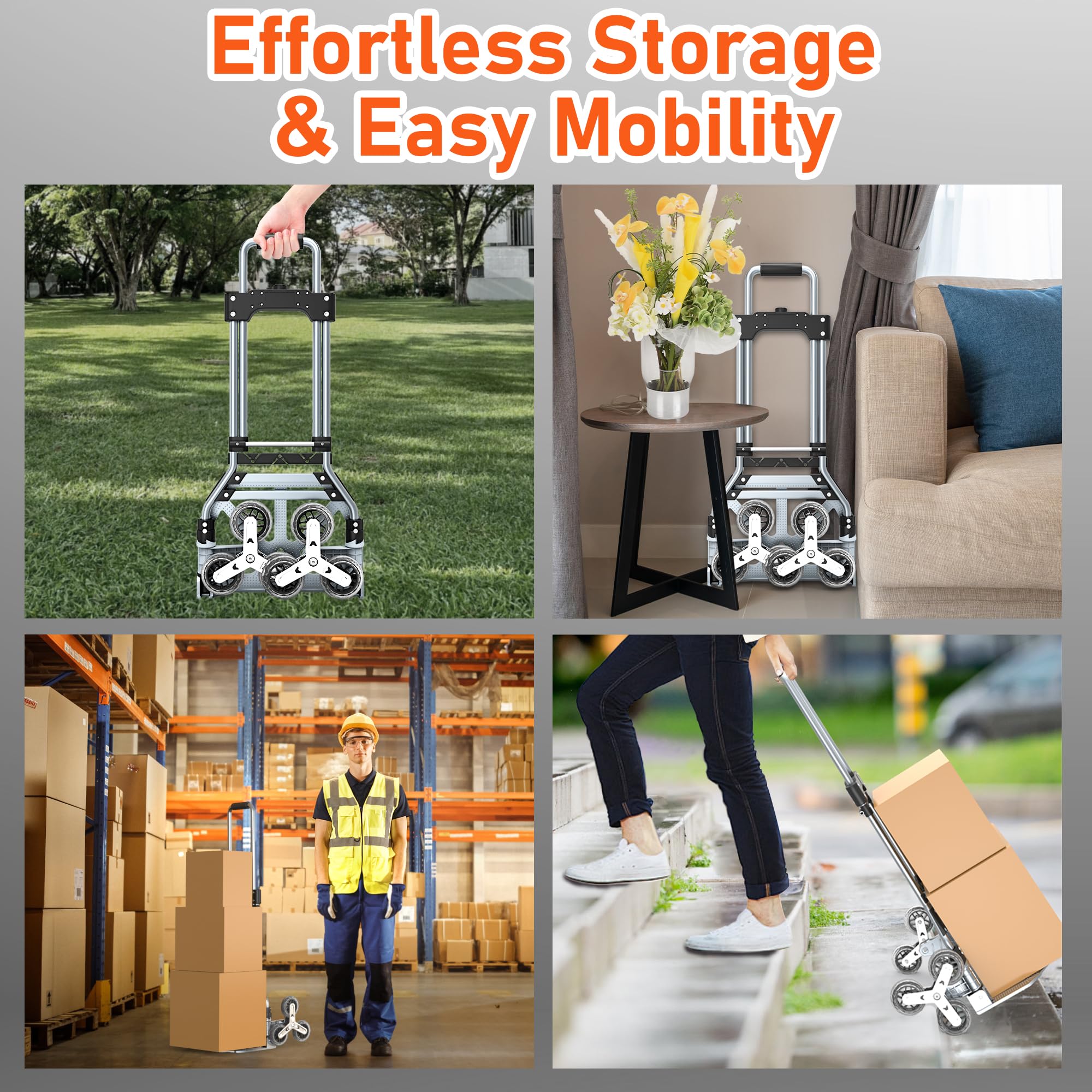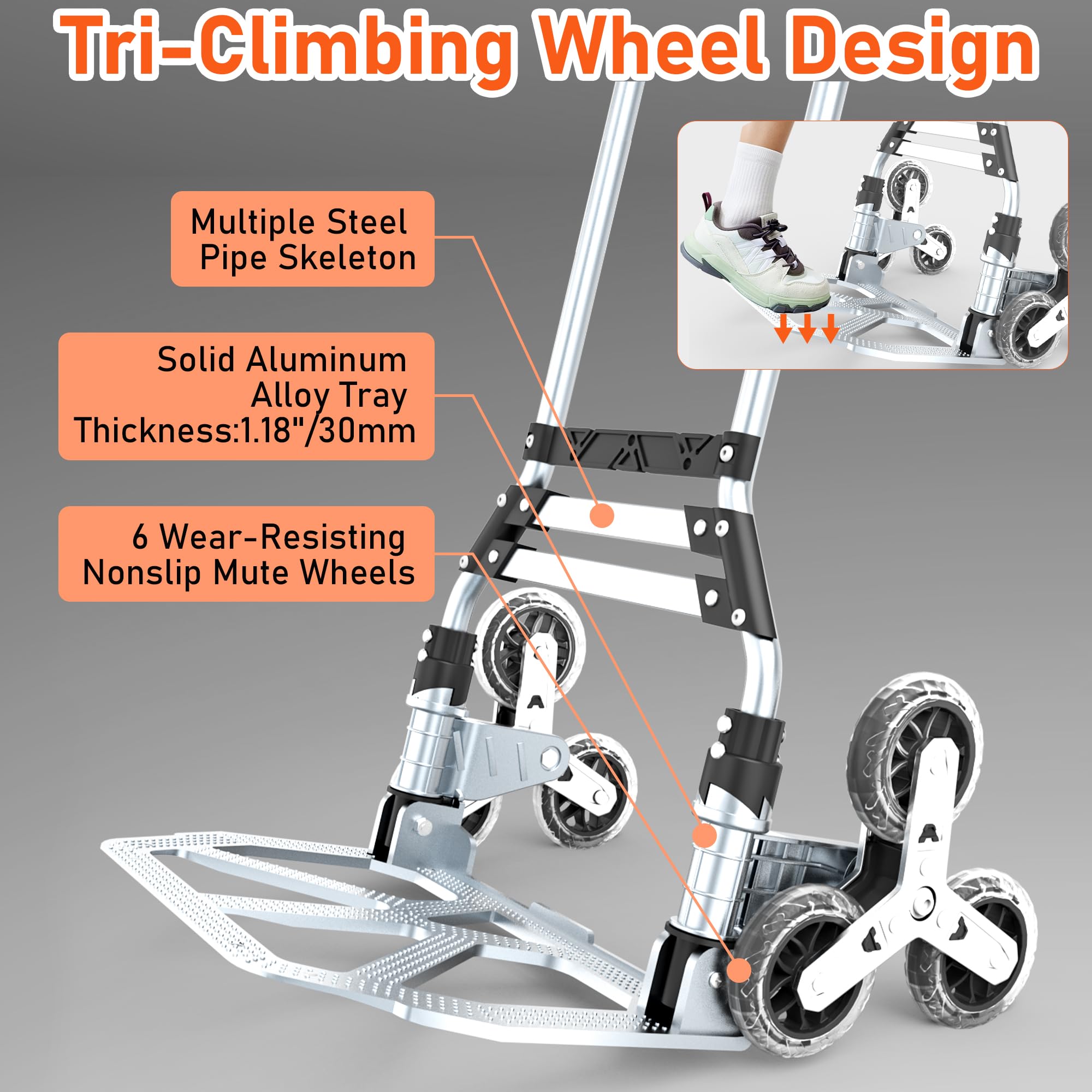 Stair Climbing Cart, 220 LBS Aluminum Stair Climber Dolly, Heavy Duty Folding Hand Truck Dolly with 6 Wheels, Telescoping Handle and Elastic Rope for Home, Moving, Groceries, Warehouse