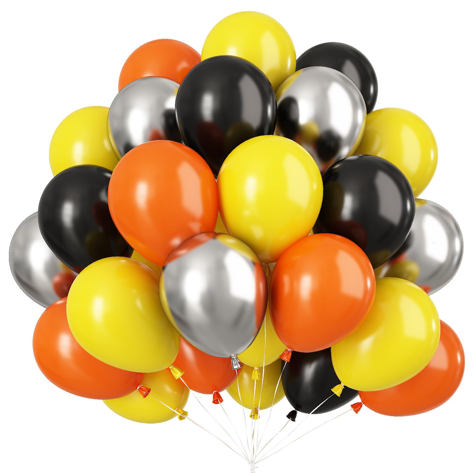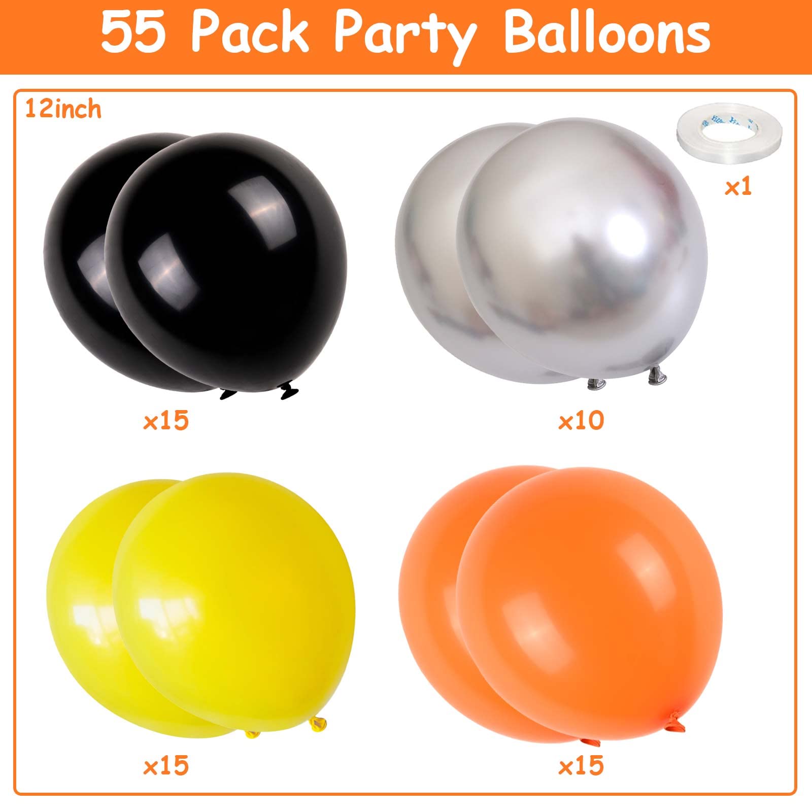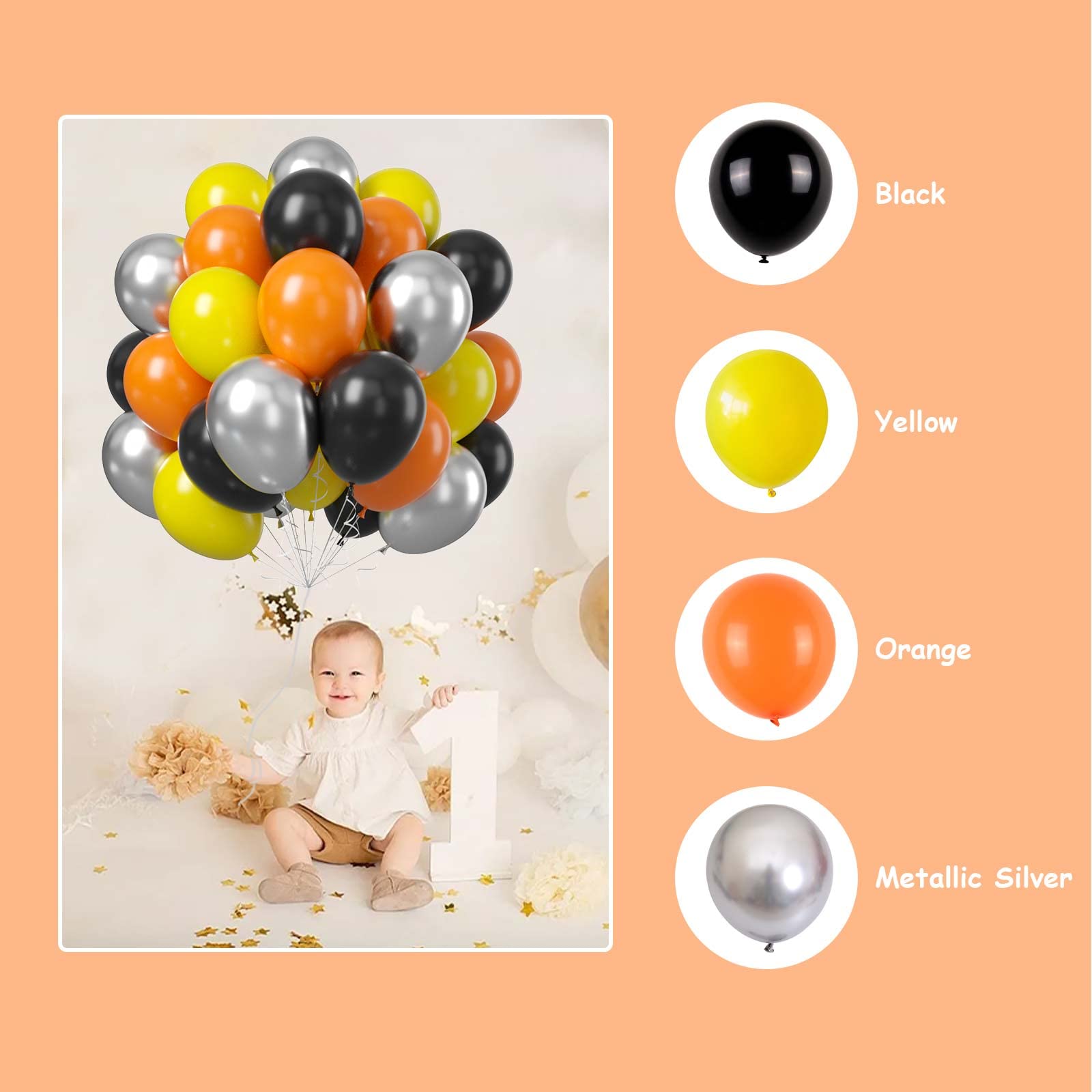 🎈 Orange Black Yellow Balloons Set - The balloon kit has beautiful 12inch balloons in 4 different types: 15pcs yellow balloons, 15pcs orange balloons, 15pcs black balloons, 10pcs metallic silver balloons and 1pc orange balloon ribbon. To make your party most memorable. Vibrant colors add to the party's color theme, which can catch the attention of people and take as a photo props, giving your guests a surprise and impressive party.