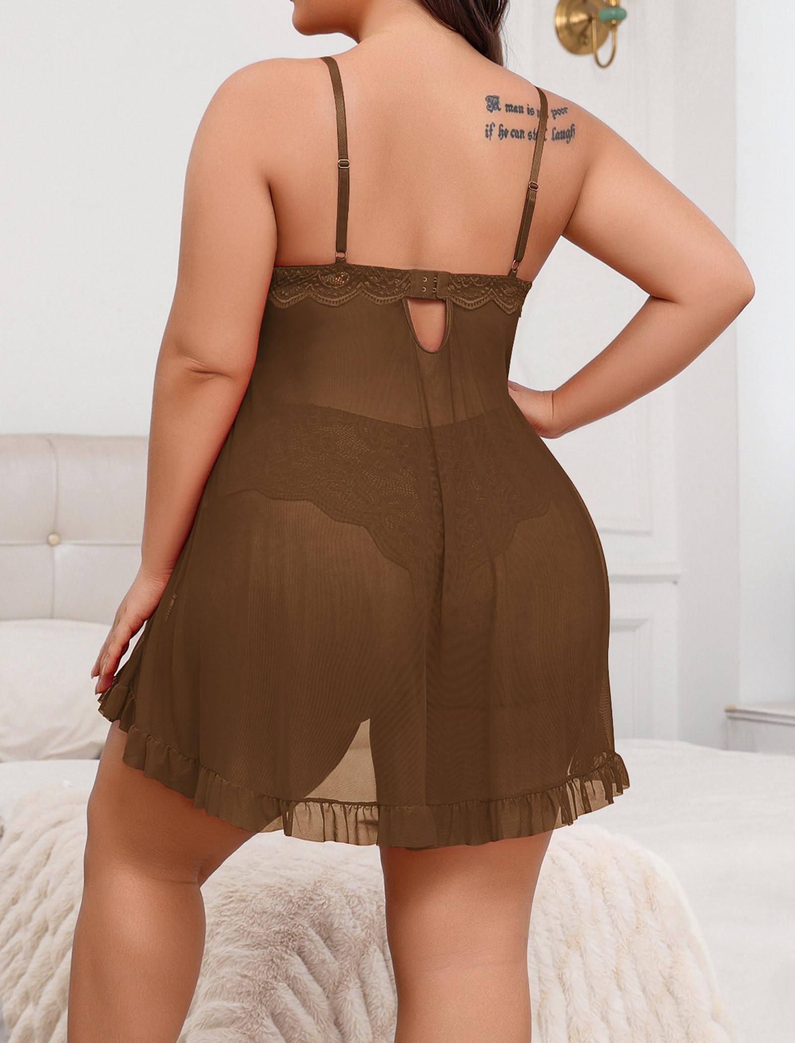 【High-quality Material】This plus size lingerie is made of 95% polyester and 5% spandex. Fabric is very soft and the lace craftsmanship is beautifully detailed.