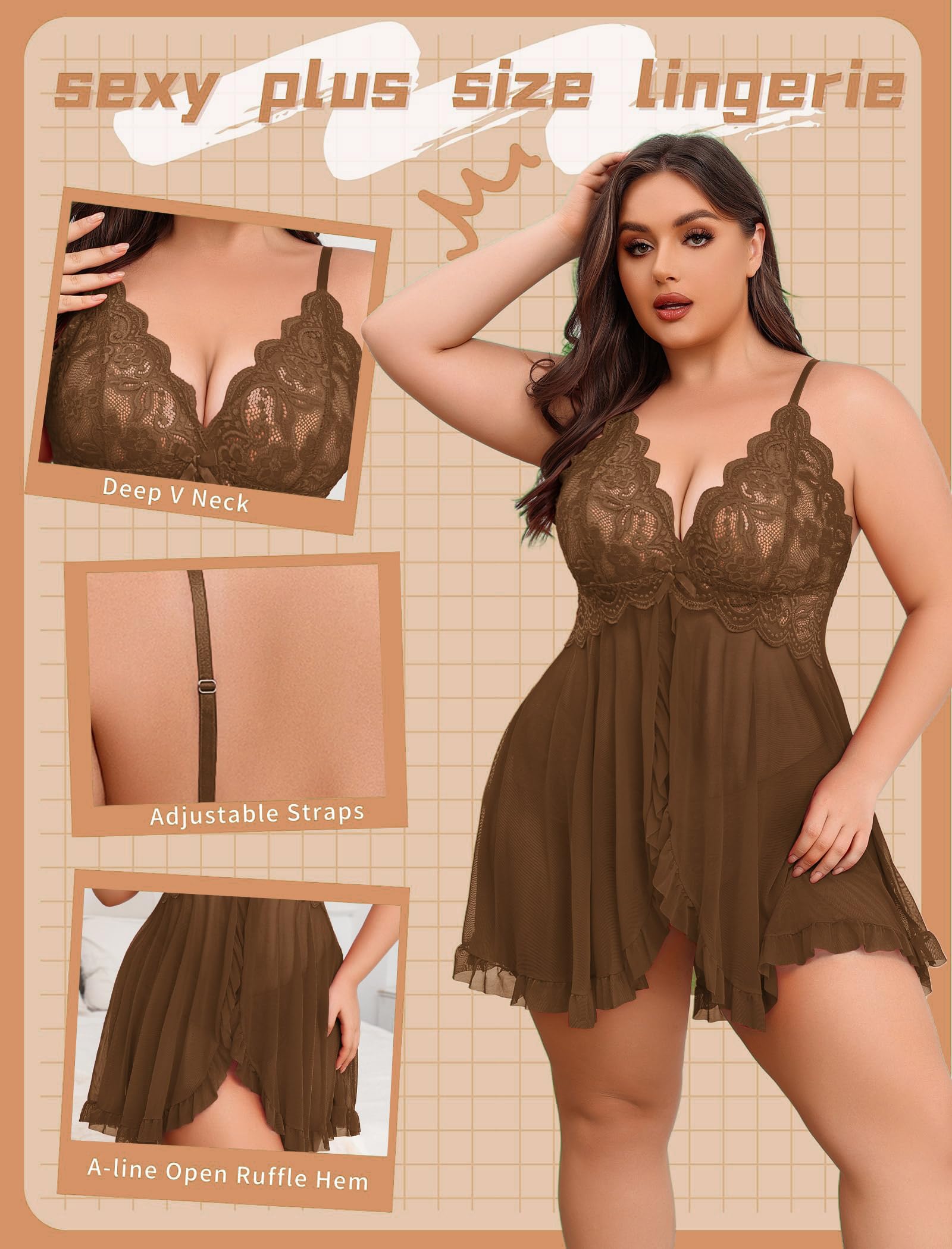 【Package Content】1 x Plus Size Lingerie Dress (No underwire)+ 1 x Women's Lace Panty.If you're not that busty of thick from the bottom I suggest you order your normal size. But if you are order a size bigger that for a perfect fit!