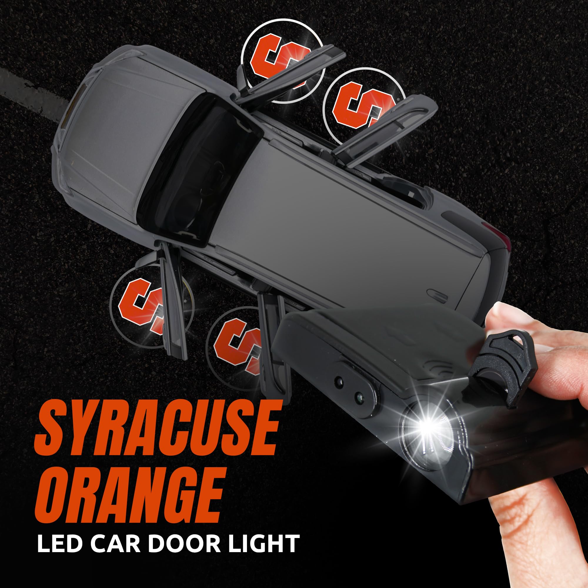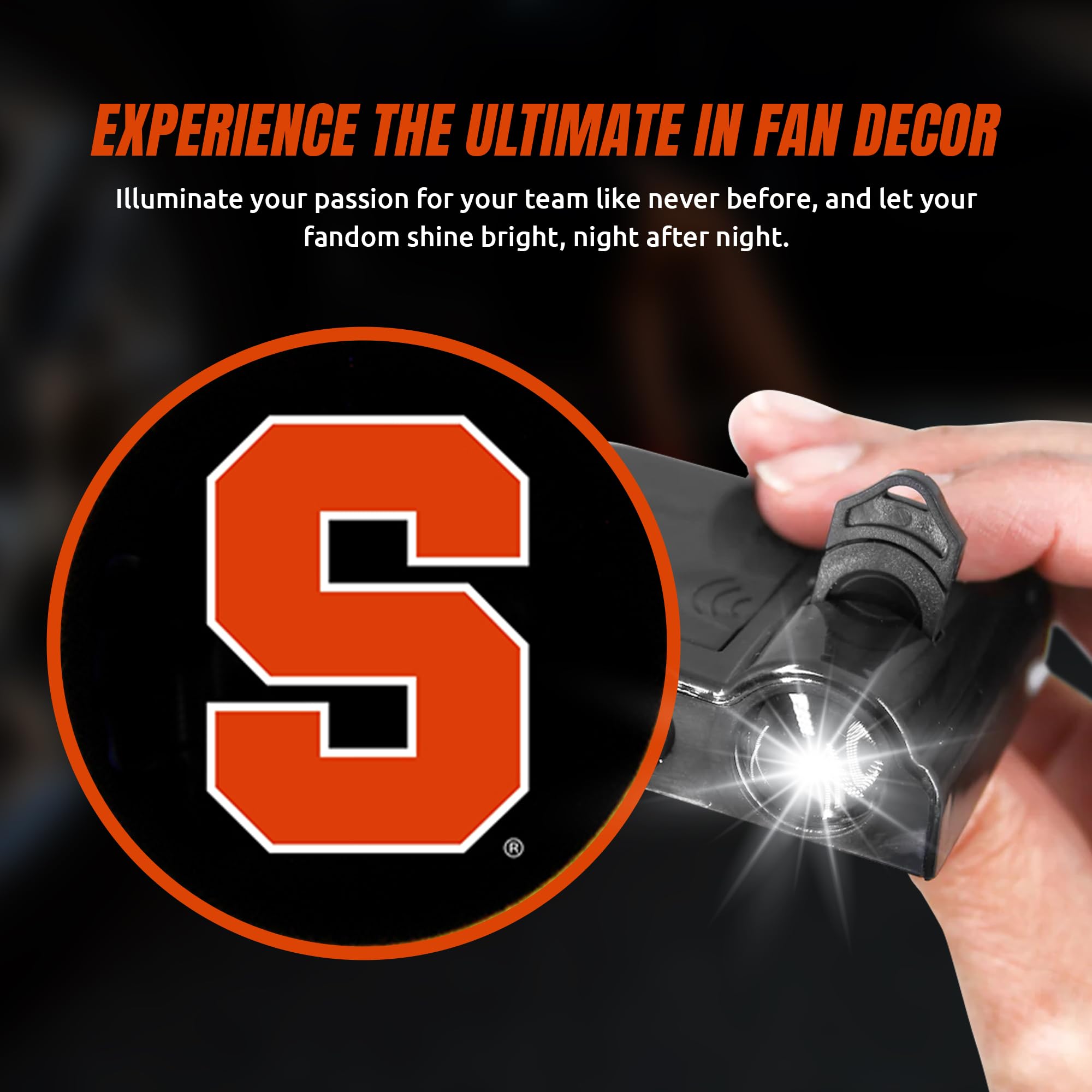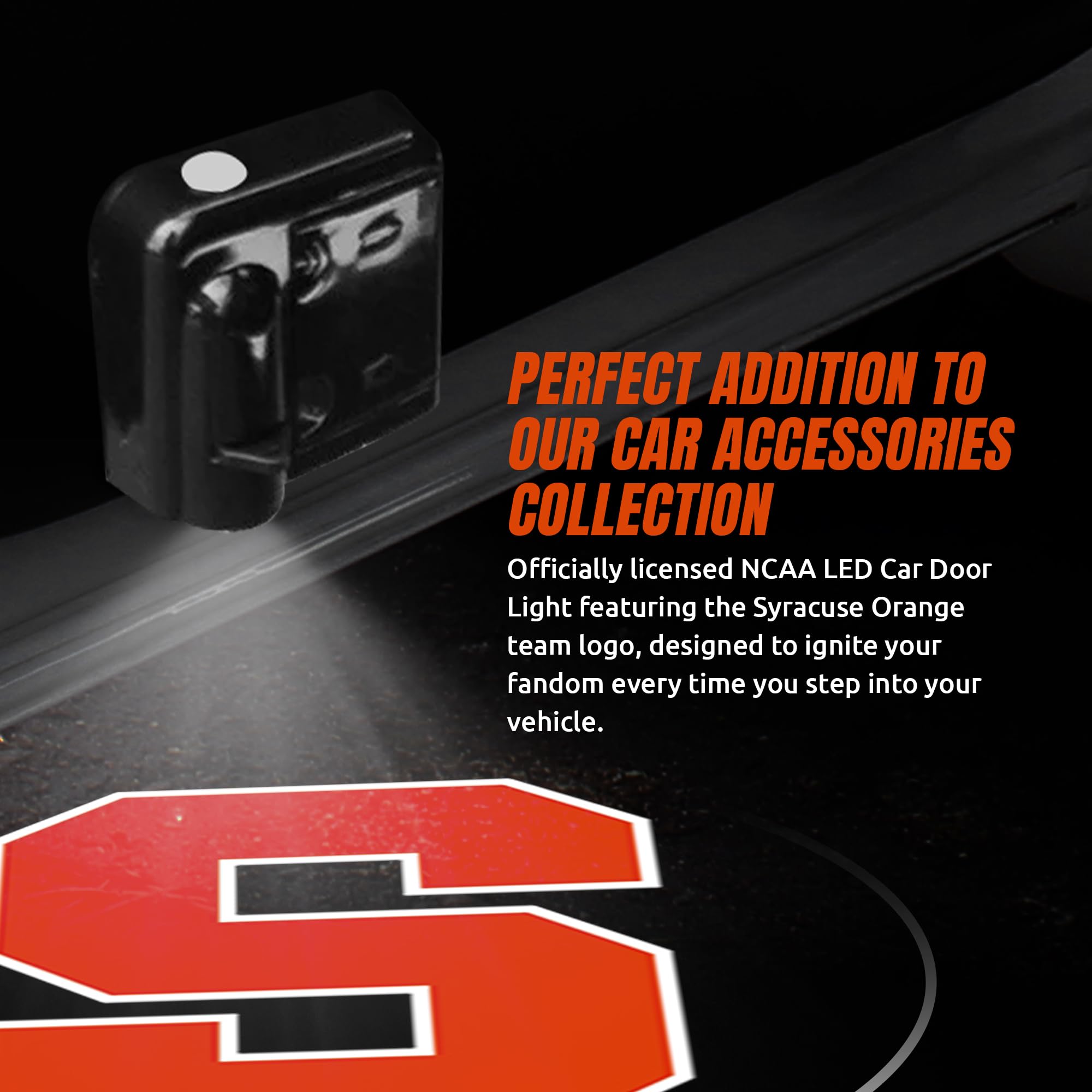 Take your Syracuse pride on the road with this officially licensed Car Door Light Logo Shadow Display - Car Accessories! Every time you open your car door, the fierce team logo will be appears onto the ground, letting everyone know you're a true fan. This isn't just another car accessory – it's a statement. It's a way to show your love for the team, no matter where you're headed. Whether you're cruising for the big game or just running errands around town, this light will make sure your team spirit is always shining. Installation is a breeze – no tools or technical skills required. The design and adhesive backing make it easy to stick on any car door. It's also battery-powered, so you don't have to mess with any wiring. Just pop in some AAA batteries and you're good to go. This light is the perfect gift for any Syracuse fan. So whether you're treating yourself or surprising a fellow fan, this is the accessory that'll make you the envy of every tailgate.