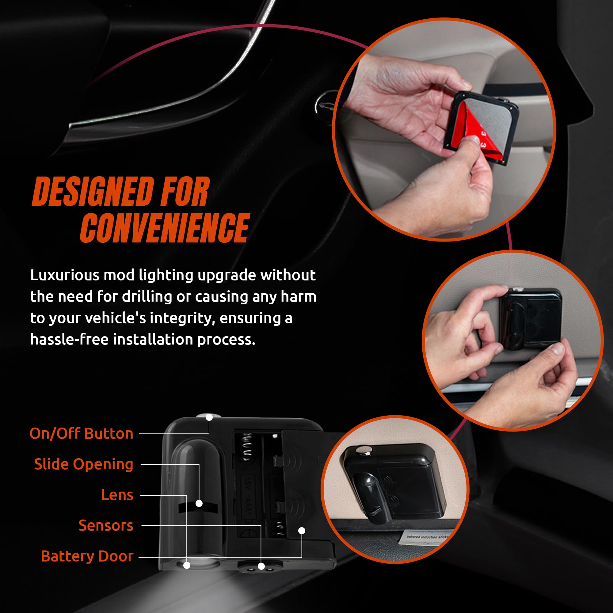 Battery-Powered and Universal Fit: Runs on standard AAA batteries, offering easy placement and compatibility with most car models for a clean, cable-free design.