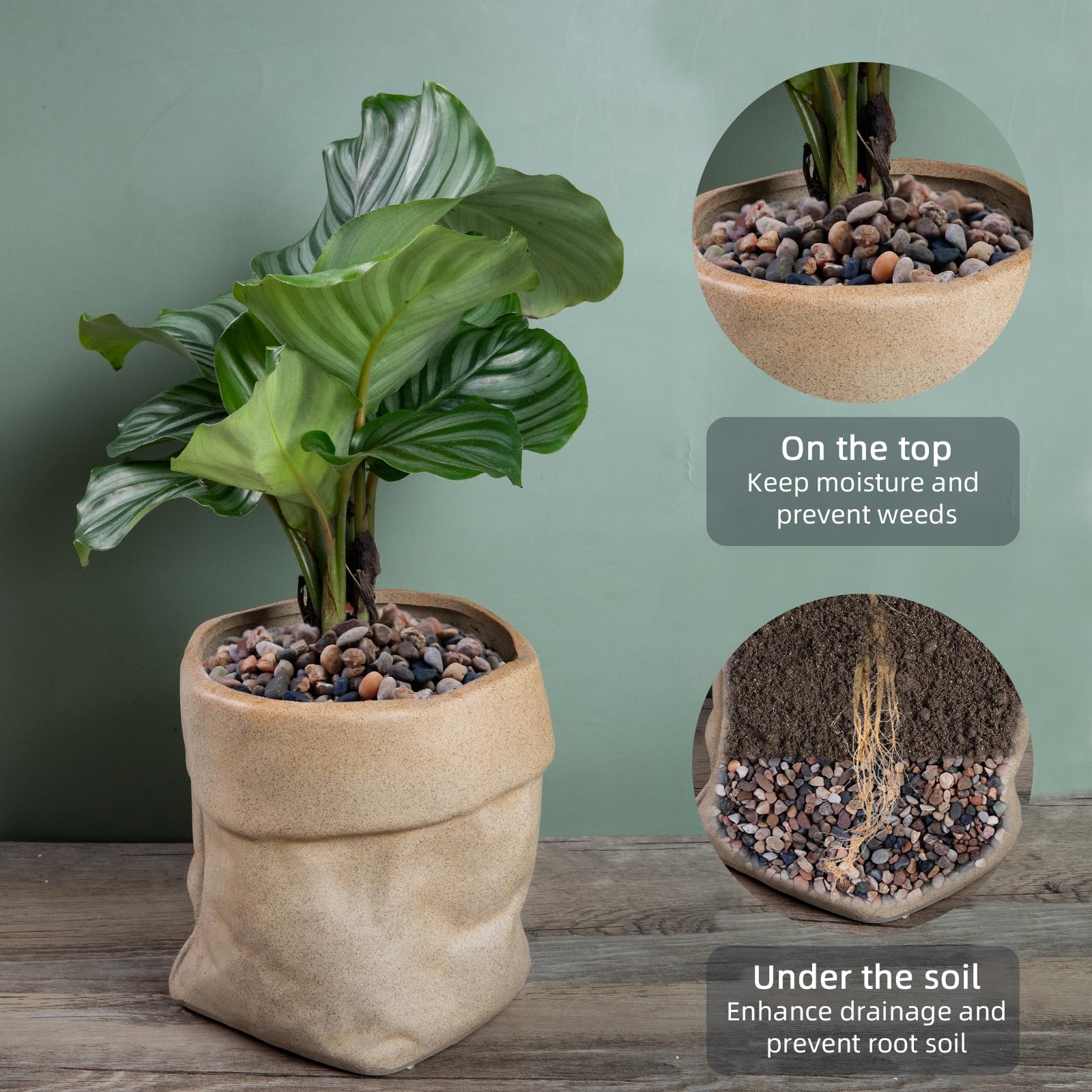 【Gorgeous Color】:Our silica gravel have a mixed color and come in various shapes, adding a unique touch to your plants.Including dark brown, light brown, gray, black, the color collocation is very natural atmosphere, adding a unique touch to your plants.