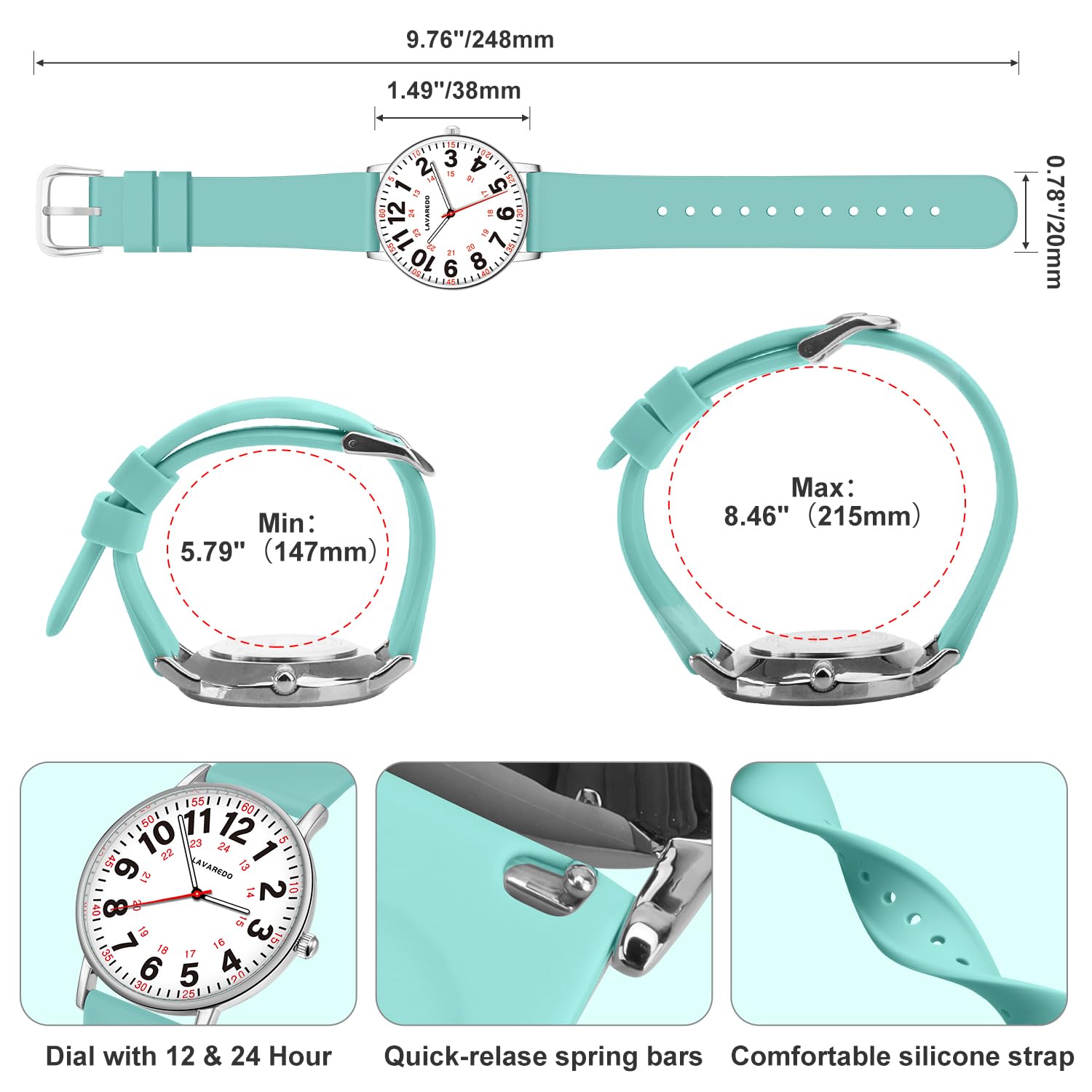 EasyRead & Military Time:Easy-to-read dial with 12/24 hour,luminescent face and MINUTE/HOUR hand for night-time visibility.The soft silicone strap is extremely comfortable to wear and the lightweight size is perfect for use at work