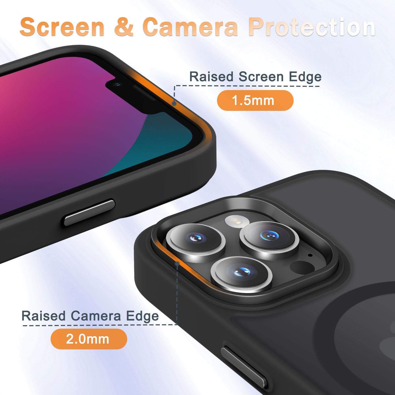 Trustworthy Protection : Made from flexible TPU bumper and hard PC back, ensure an optimal shockproof and anti-drop protection. The raised lip of the screen and lens relieves impact, protects your phone and camera against drops & cracks & surface scratches