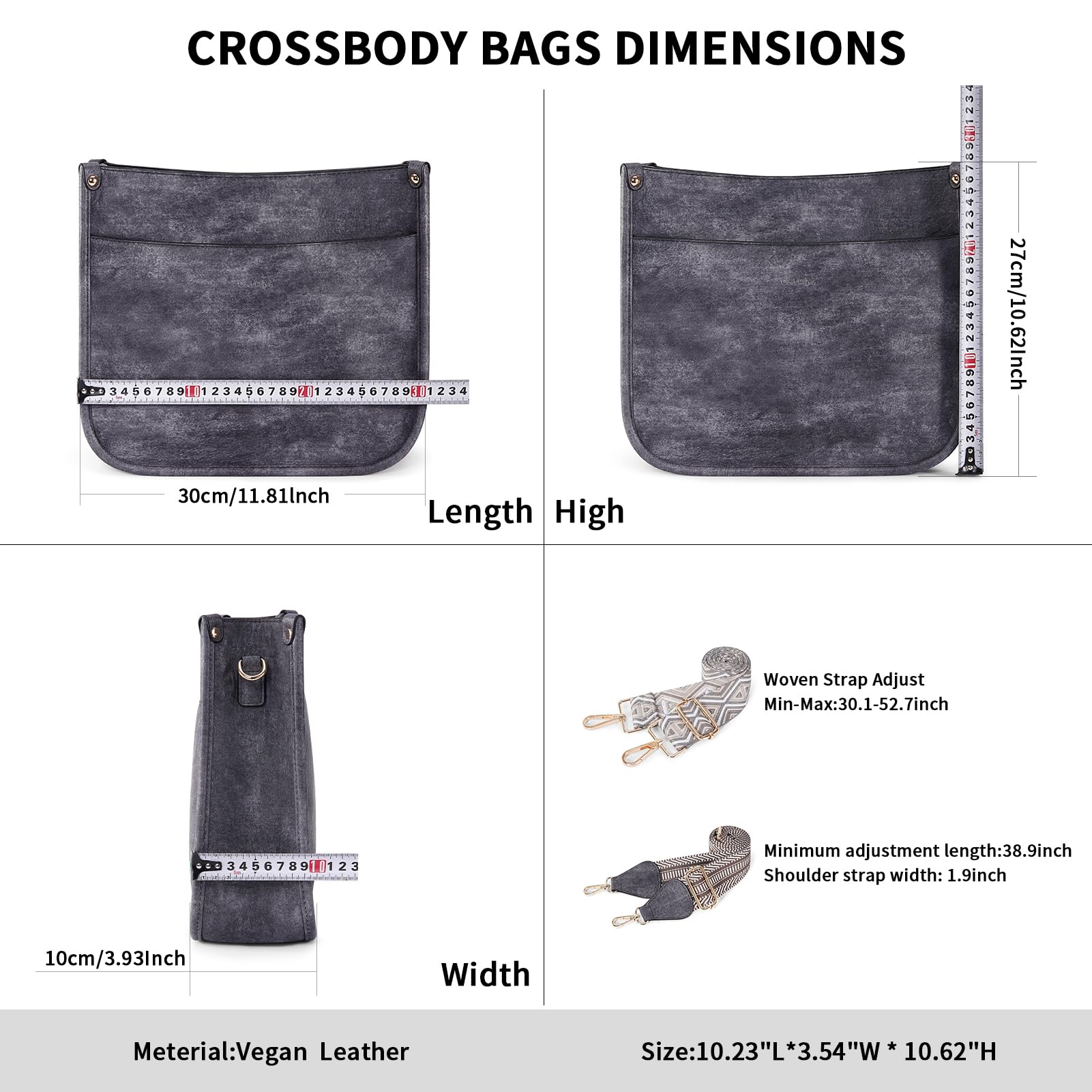 Crossbody Bag Dimension:This crossbody handbag dimension:(L) 12 x (W) 3.5x(H)10inch,weight about 0.61kg / 1.34pounds,and our leather crossbody bags for women is capable for storing many small daily necessities,such as wallet, phones,ipad,keys,cash,coins,sunglasses and makeup accessories,meet your large capacity needs