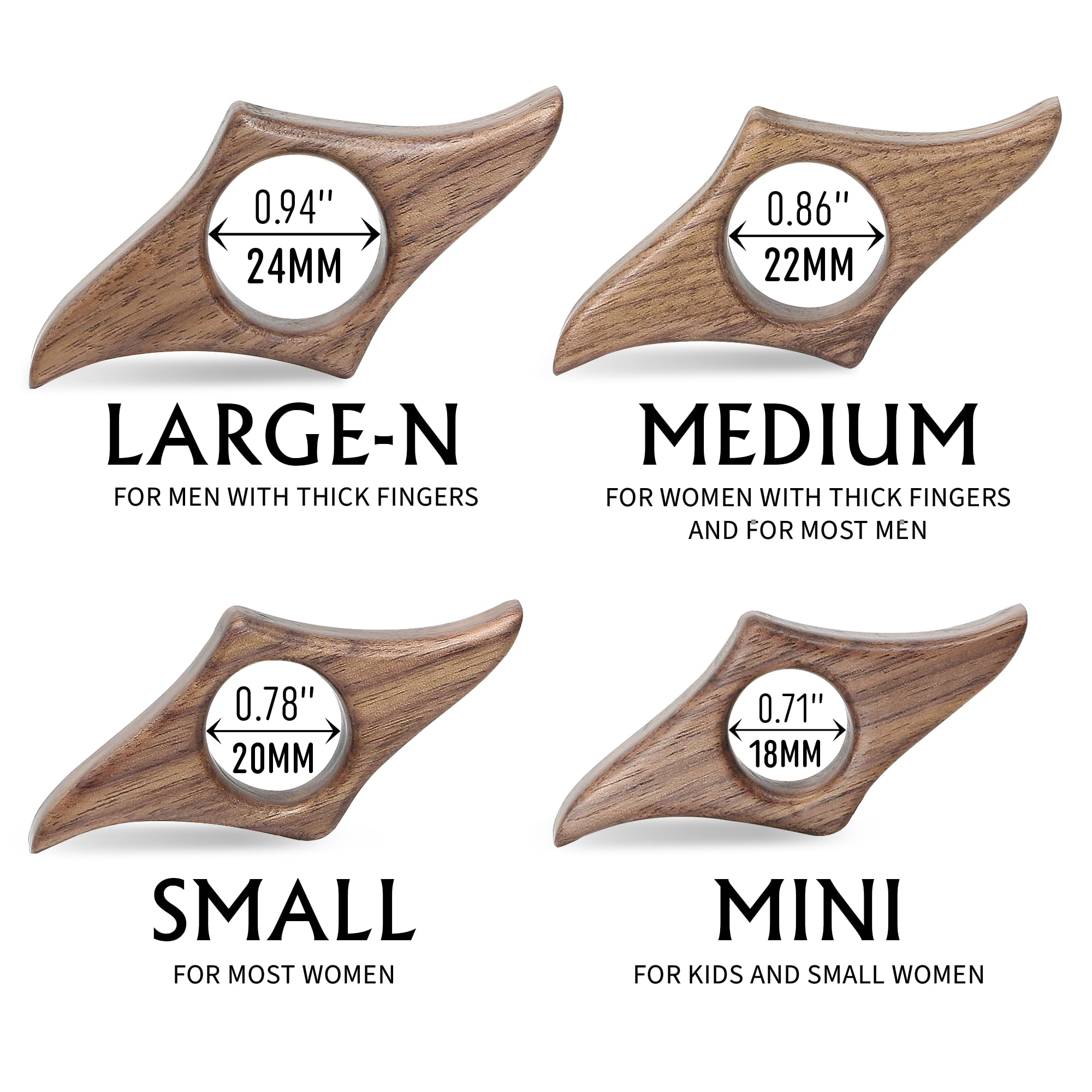 Sizing Options for All: Available in various sizes to ensure a perfect fit for everyone. Mini (0.71") for kids and small women, Small (0.78") for most women, Medium (0.86") is designed for women with thick fingers and for most men, Large-N (0.94") is for men with thick fingers.
