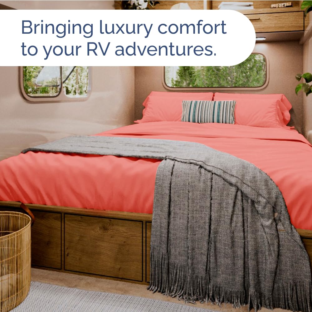 PERFECT FOR TRAVEL & ON-THE-GO: Whether you're looking for camper bedding for bunks, traveling, or staying in an RV, this compact fitted sheet is easy to pack and carry. It offers comfort and quality wherever your adventures take you, ensuring a great night’s sleep no matter where you are.