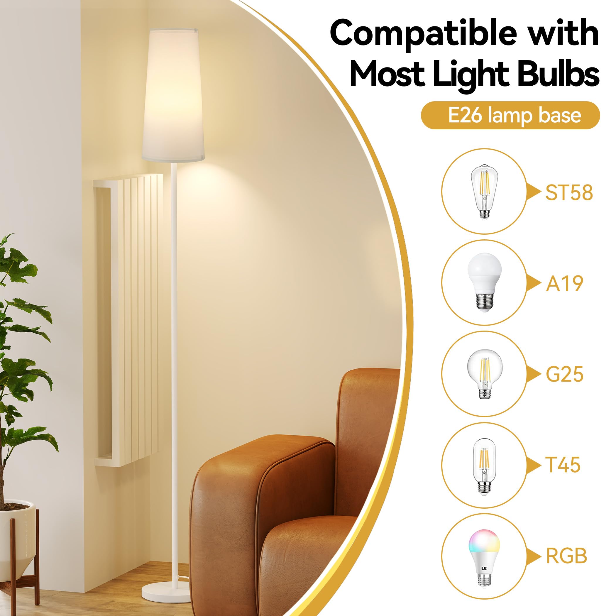 E26 Socket Compatibility: Designed with an E26 socket is compatible with most bulbs. While it comes with a three-color temperature bulb, you can easily transform it into a smart lamp, dimmable lamp, or remote lamp to suit your preferences. Max 60W.