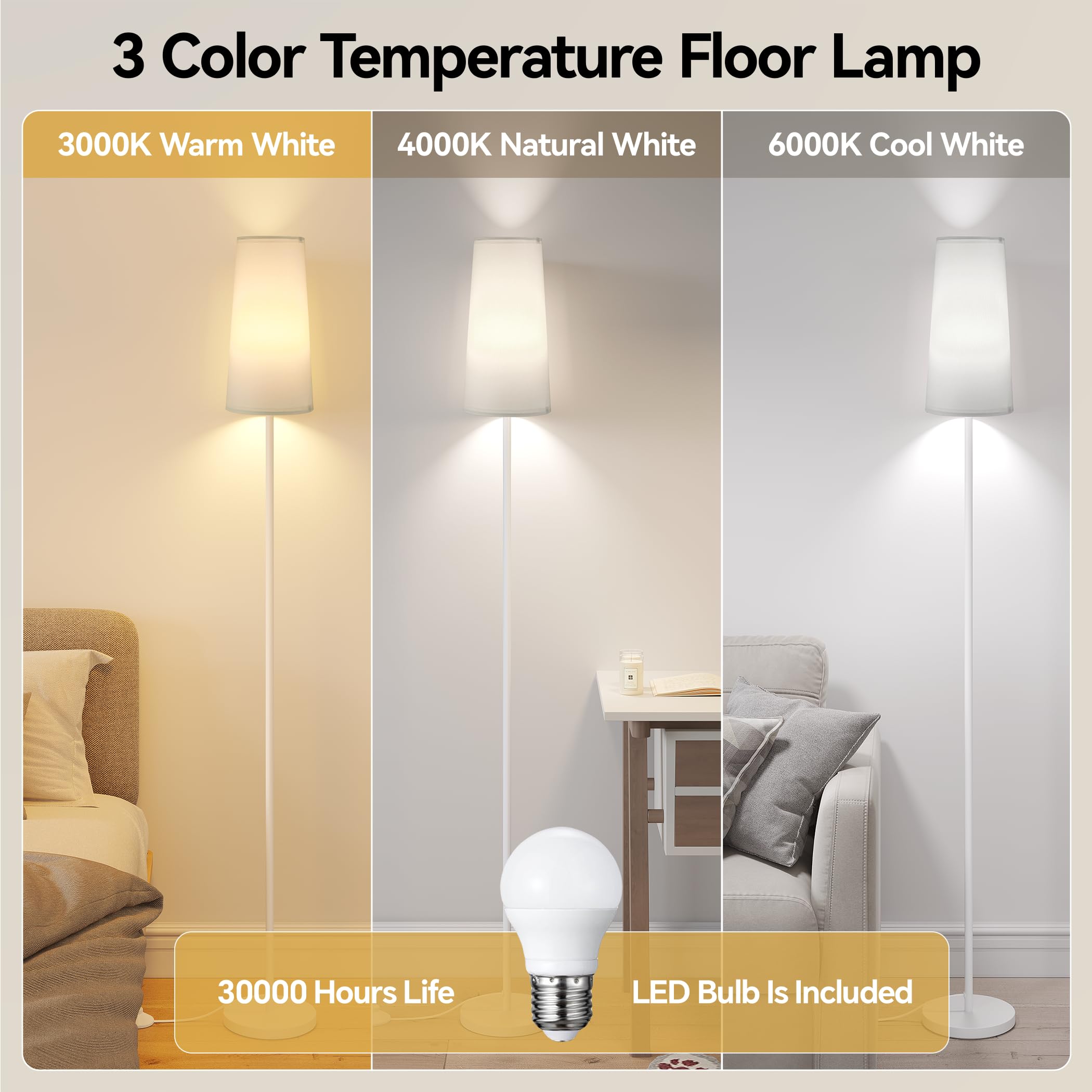 Adjustable Color Temperature: Enjoy the flexibility of three lighting options with the included led bulb. Easily switch between warm, cozy light for a relaxing atmosphere, bright cool light for reading, and neutral light for work or study.