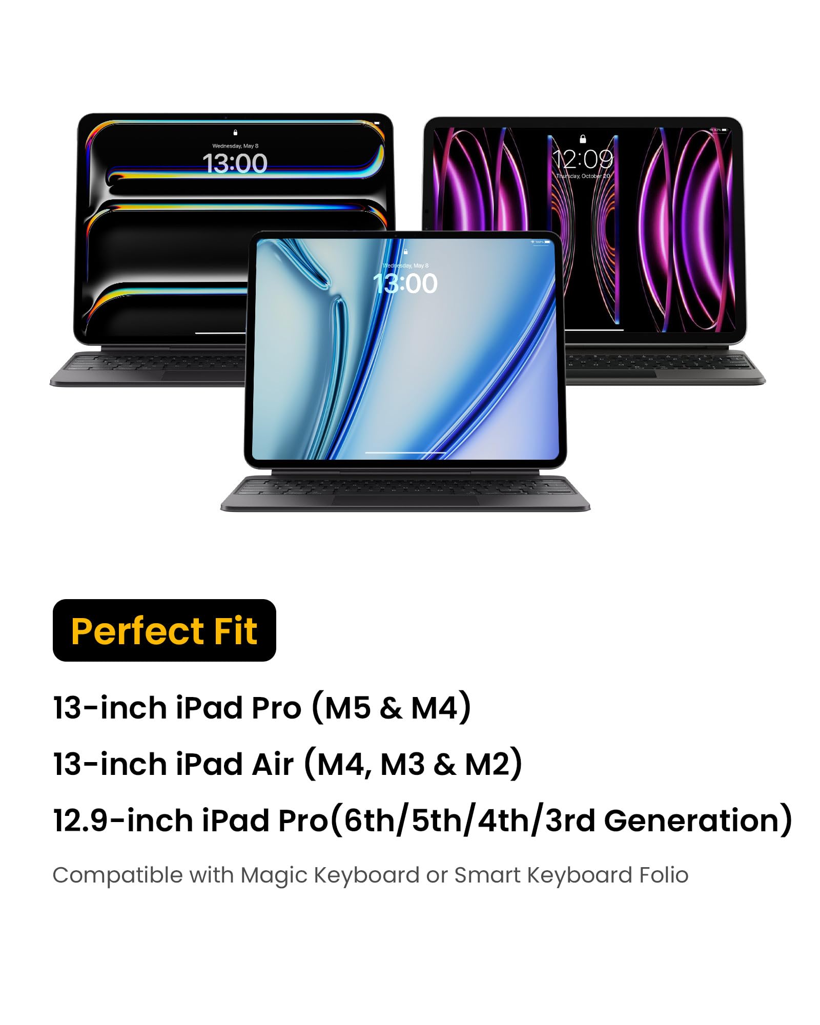Warranty & Compatibility: Get a 12-month worry-free warranty and friendly and timely customer support. It perfectly fits the iPad Air 13-inch 2026 (M4/M3/M2) with Magic Keyboard iPad Pro 13-inch (M5/M4) with Magic Keyboard, and iPad Pro 12.9-inch (6th/5th/4th/3rd Generation) with Magic Keyboard/Smart Keyboard Folio; Also compatible with 12.3-13 Inch Surface Laptop/Surface Pro 11th Copilot+PC, Surface Pro 10/9/8/X/7+/7/6/5/4/3/2/1, Internal Dimensions - 11.18" x 9.06" x 0.67", Front Pocket: 8.66" x 7.87"