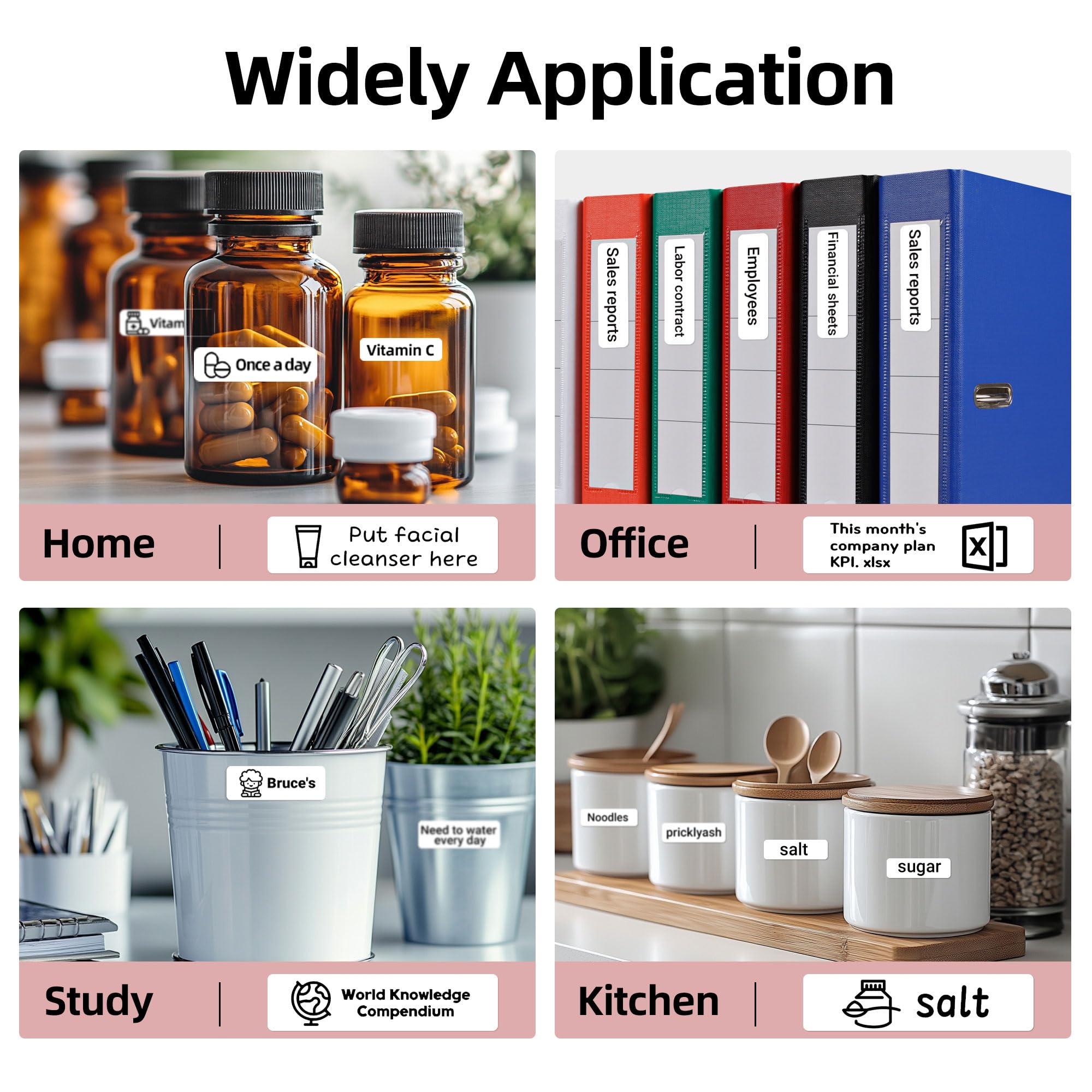 Wide Range of Applications: This label tape is ideal for everyday and professional use, including organizing storage, marking expiration dates for food and cosmetics, displaying prices and product details, sorting school or office documents, creating reminder tags, and making name tags. Whether for organization or personalization, this versatile tape adds convenience to every task