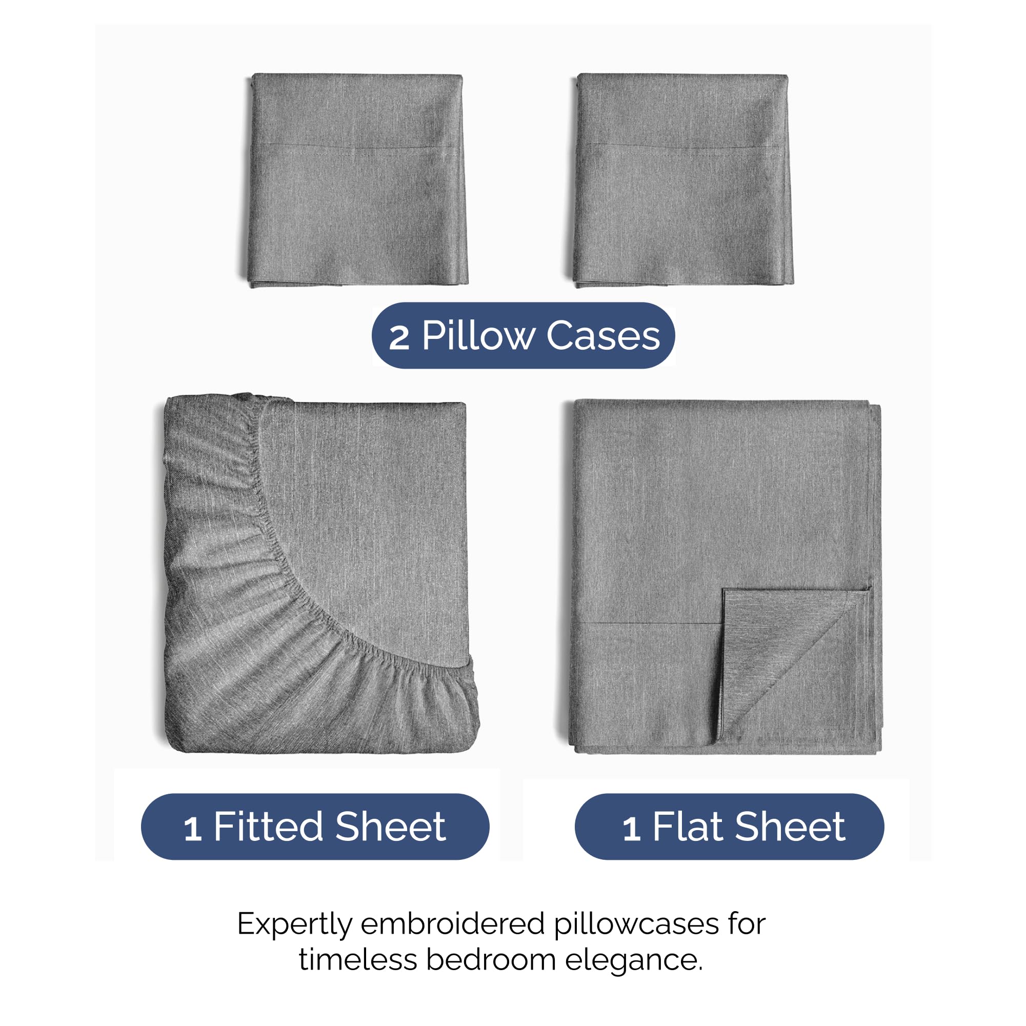 4 PIECE BED SHEET SET: 2 pillow cases and flat sheet and fitted sheet. Flat Sheet (96”x 81”) Fitted Sheet (75”x 54”) 2 Pillow Cases (20”x 30”) - a comfy upgrade for Adults, Kids, Teens, Boys & Girls.