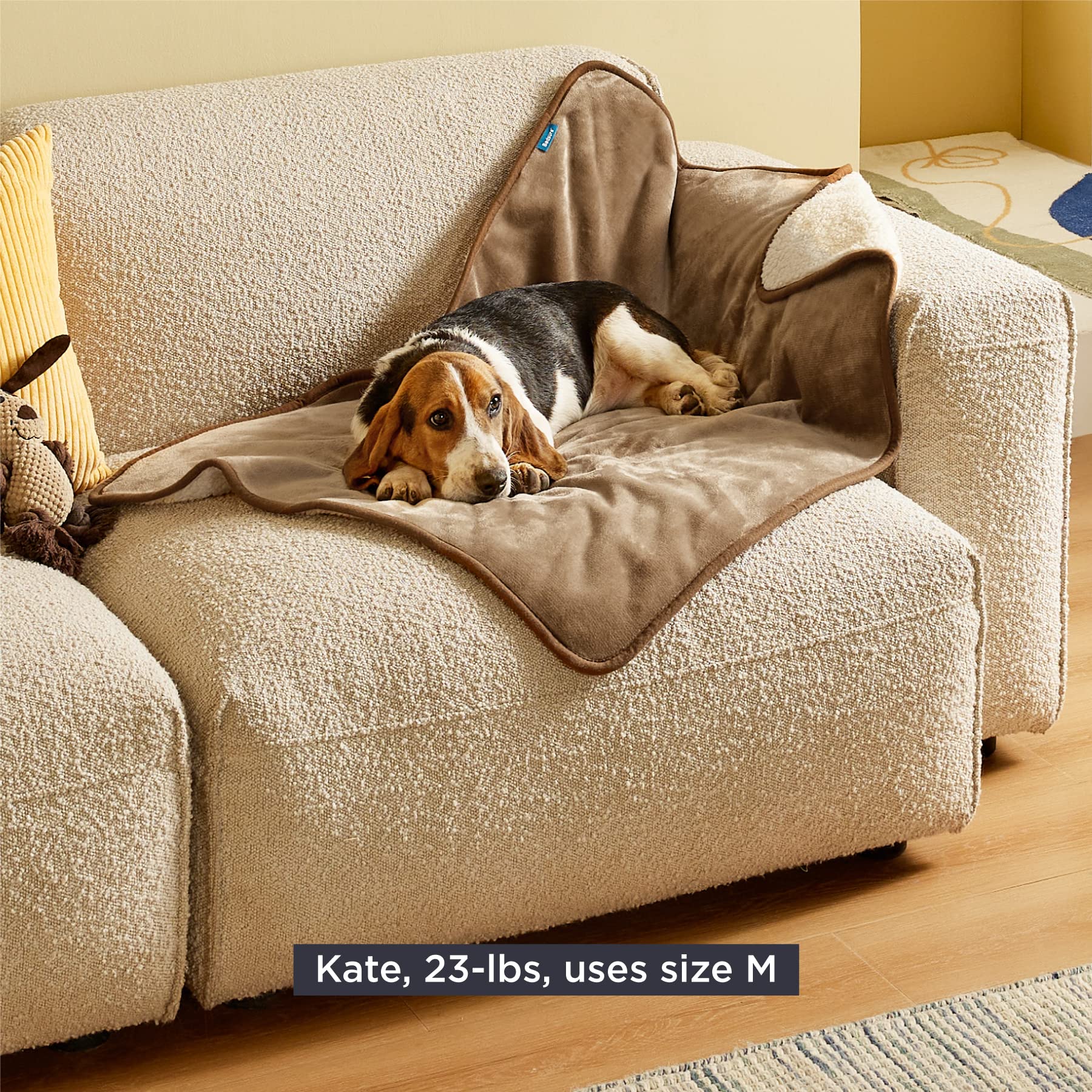 Warm & Cozy Blanket: Dog blanket is lined with warm Sherpa on one side and flannel fleece on the other. Waterproof pet blanket prevents humidity and cold, keeping your cats and dogs comfortable and warm.