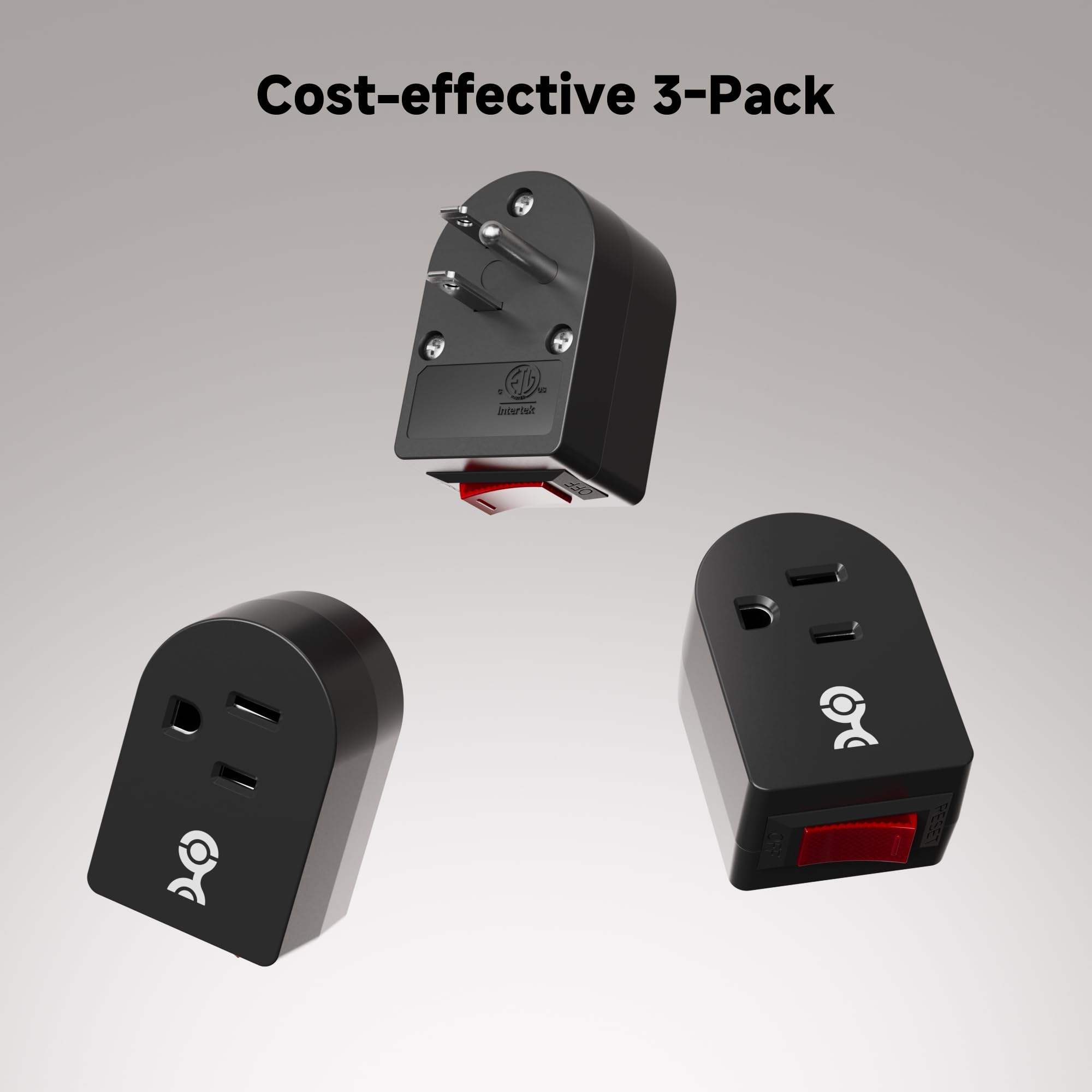 Cost-Effective 3-Pack: This pack includes three grounded outlet switches, perfect for multiple applications. Take one along when traveling to convert any standard outlet into a power switch. Each plug switch on/off is backed by a lifetime warranty for added peace of mind.