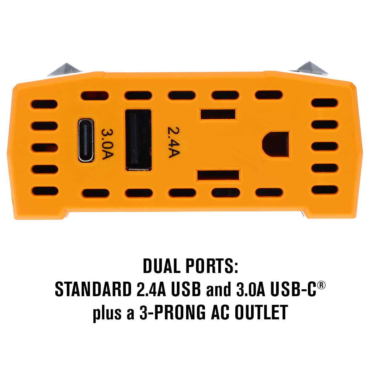 Dual ports - standard 2.4A USB and 3.0A USB-C(R) to power or charge handheld video games or other devices