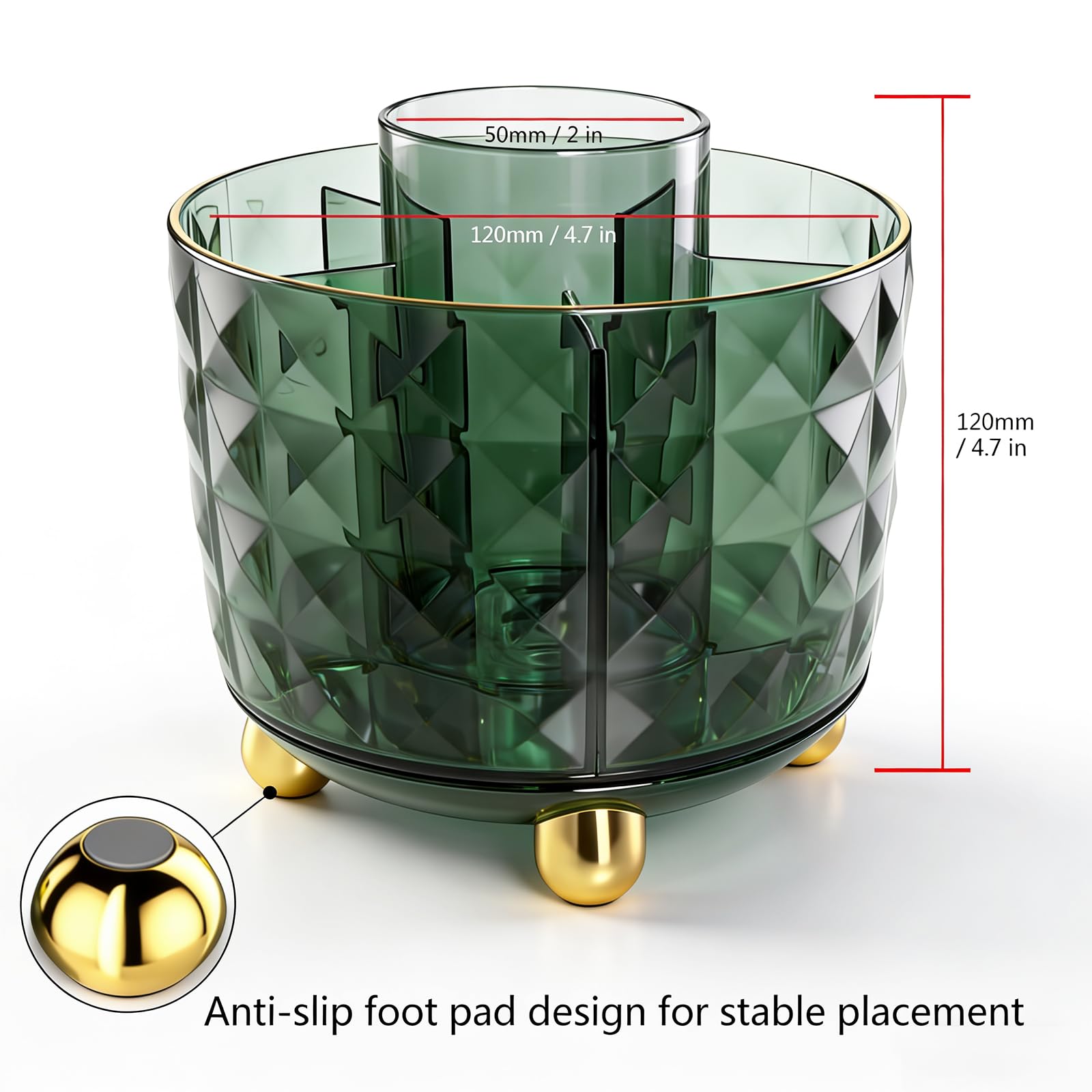 Stable Placement: The anti-slip foot pad design ensures stable placement on any desk surface, preventing the makeup brush holder from sliding or tipping over.
