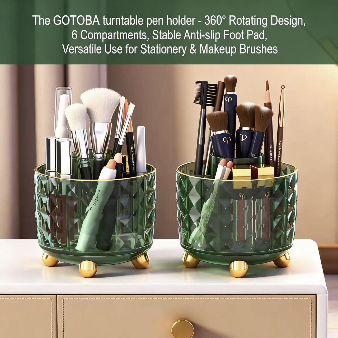 Stylish and Functional: The GOTOBA makeup organizer combines cute brush holder, style and functionality, making it the perfect addition to any workspace.