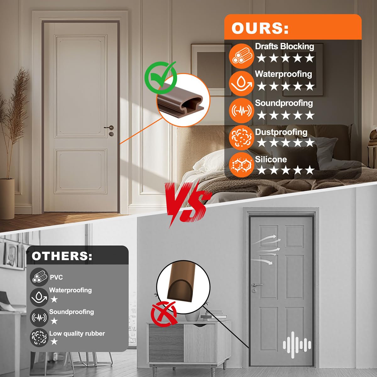 【THICKENED SILICONE MATERIAL - COMPLETELY BARRIERING AIR AND NOISE】:The weather stripping is made of thickened TPE material with good sealing and anti-deformation properties, with this weather stripping you can completely seal the gaps, keep the room warm in winter and cool in summer, Helps To Reduce Energy Consumption ,and blocking the entry of noise, light, rain, dust, wind, leaves, snow, and odor, and no reptile will sneak in.
