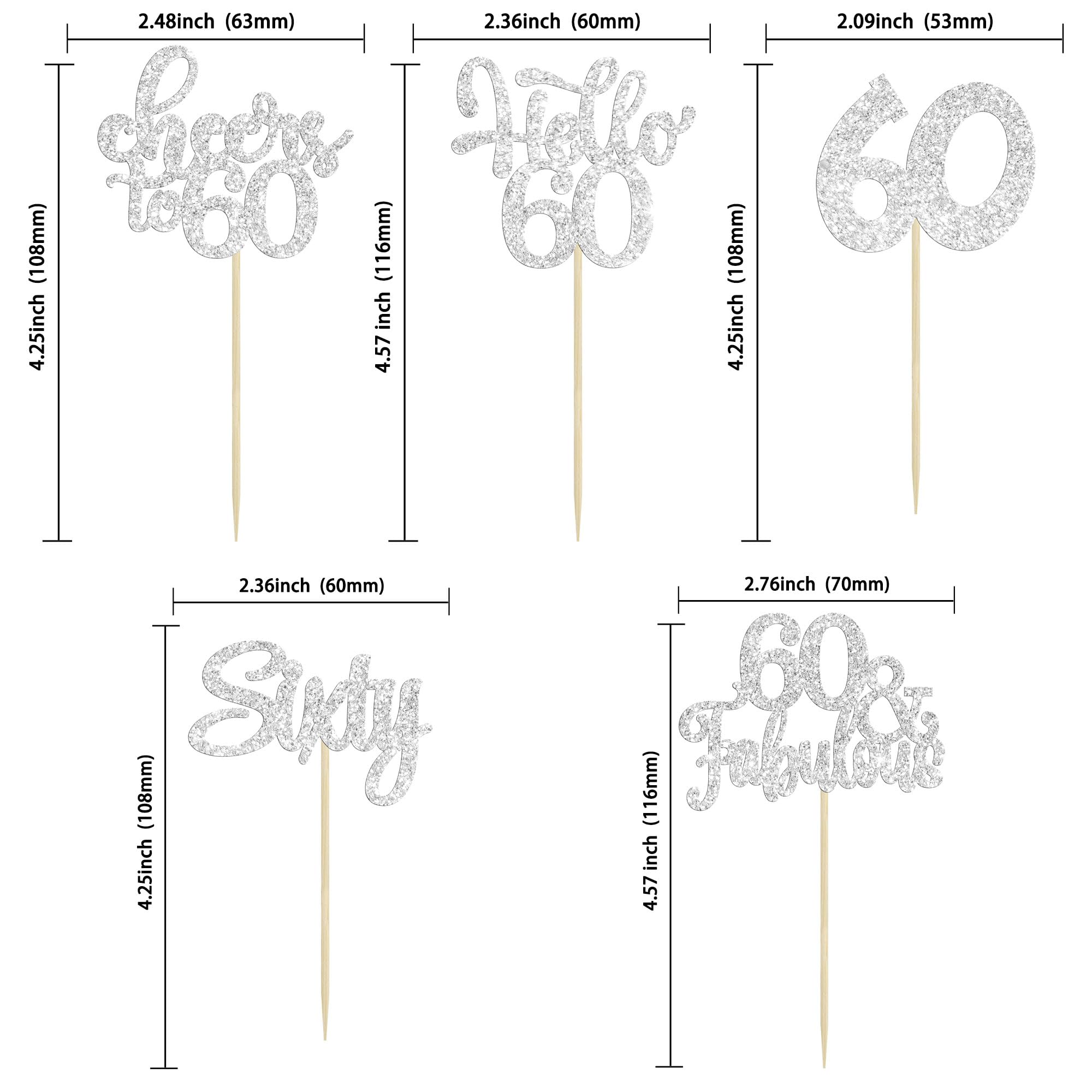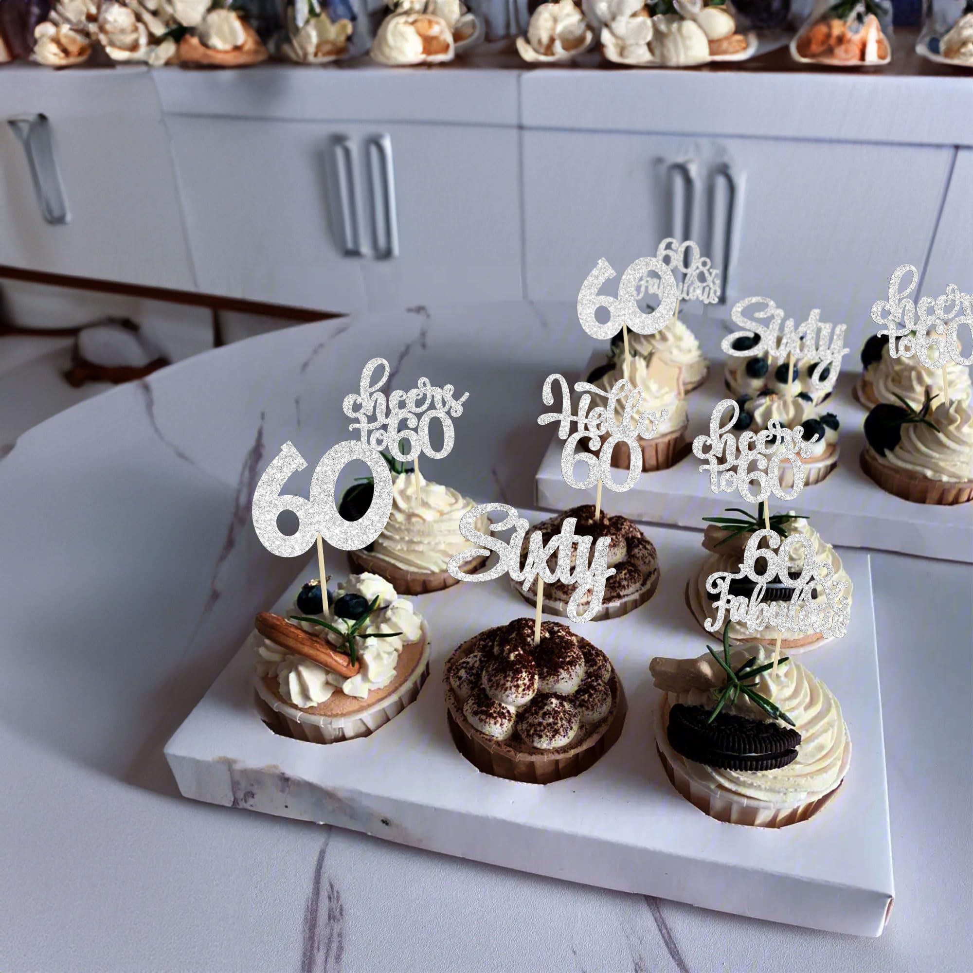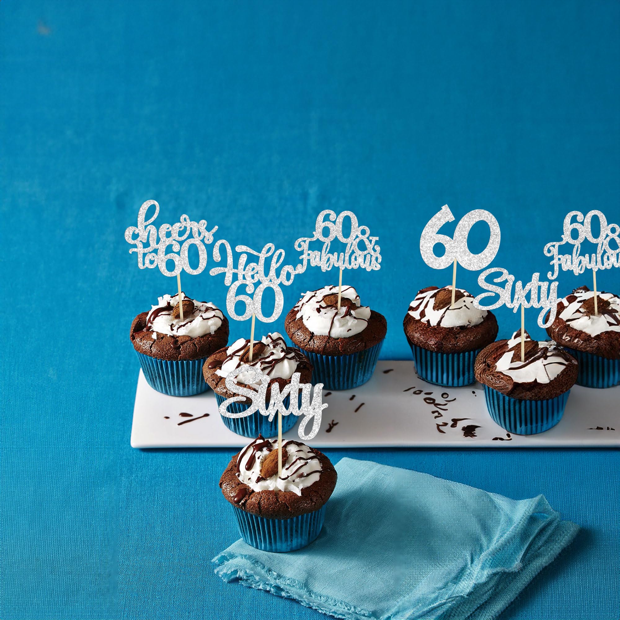 -These Happy 60th Birthday Cupcake Toppers are so cute and good for happy 60th birthday theme party, cheers to 60 years theme party, 60 fabulous theme party, happy 60th birthday anniversary theme party cake decorations. They can make your cupcake more attractive and bring the fun to your party. You can also apply them for ice cream, fruits, cookies and other desserts.