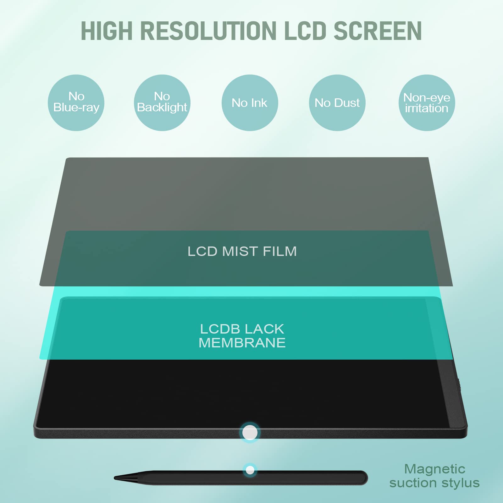 【11.5”Dimensions,22”Capacity】Upgraded double-sided full screen makes LCD writing tablet for adults delicate and ultra-portable with several times more capacity.Only 0.2” thickness and 6.8OZ weight. Writing tablet can be your digital notepad and electronic notepad.Real pen and paper handwriting experience,but more recyclable than pen and paper.