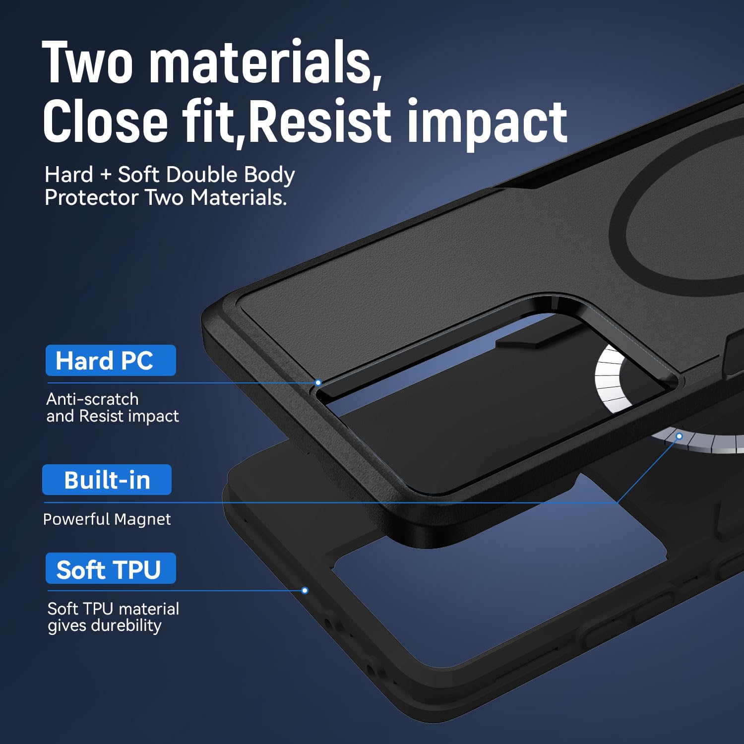 [Screen & Camera Safeguard] This strong magnetic case provides 1.3 mm camera lips and 0.8 mm screen lips, which help prevent your Galaxy S21 ultra from scratch and broken. The frosted tree-grain feel on the back provides excellent grip for one-handed operation.