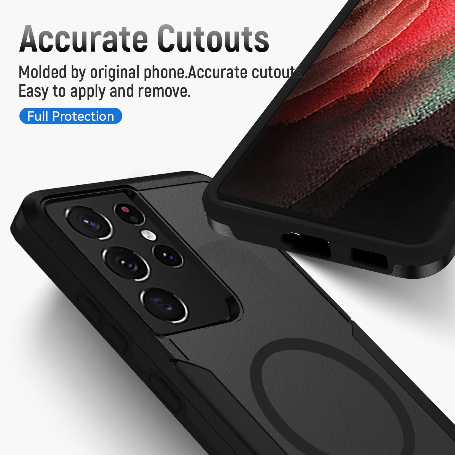 [Strong Magnetic Attraction] The galaxy s21 ultra case have built-in 38 super N52 magnets. Its magnetic attraction reaches 2800 gf, which is almost 7X stronger than ordinary, therefore it won't fall off no matter how it shakes when you are charging. The case only compatible with magsafe wireless chargers.